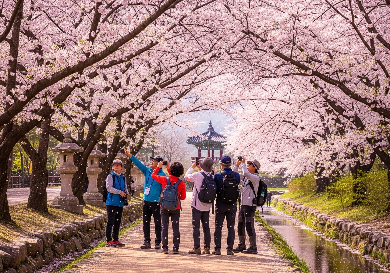 - 매직 아워 활용 (이른 아침 또는 야간): 벚꽃이 만개하는 시기에는 이른 아침(오전 7시 전후)이나 야간(오후 9시 이후)에 인파가 크게 줄어들어요. 이때를 노리면 촬영 대기열도 짧아지고, 낮과는 또 다른 몽환적인 벚꽃 풍경을 만날 수 있답니다. 특히 야간 라이트업은 환상적인 분위기를 연출해 줄 거예요!