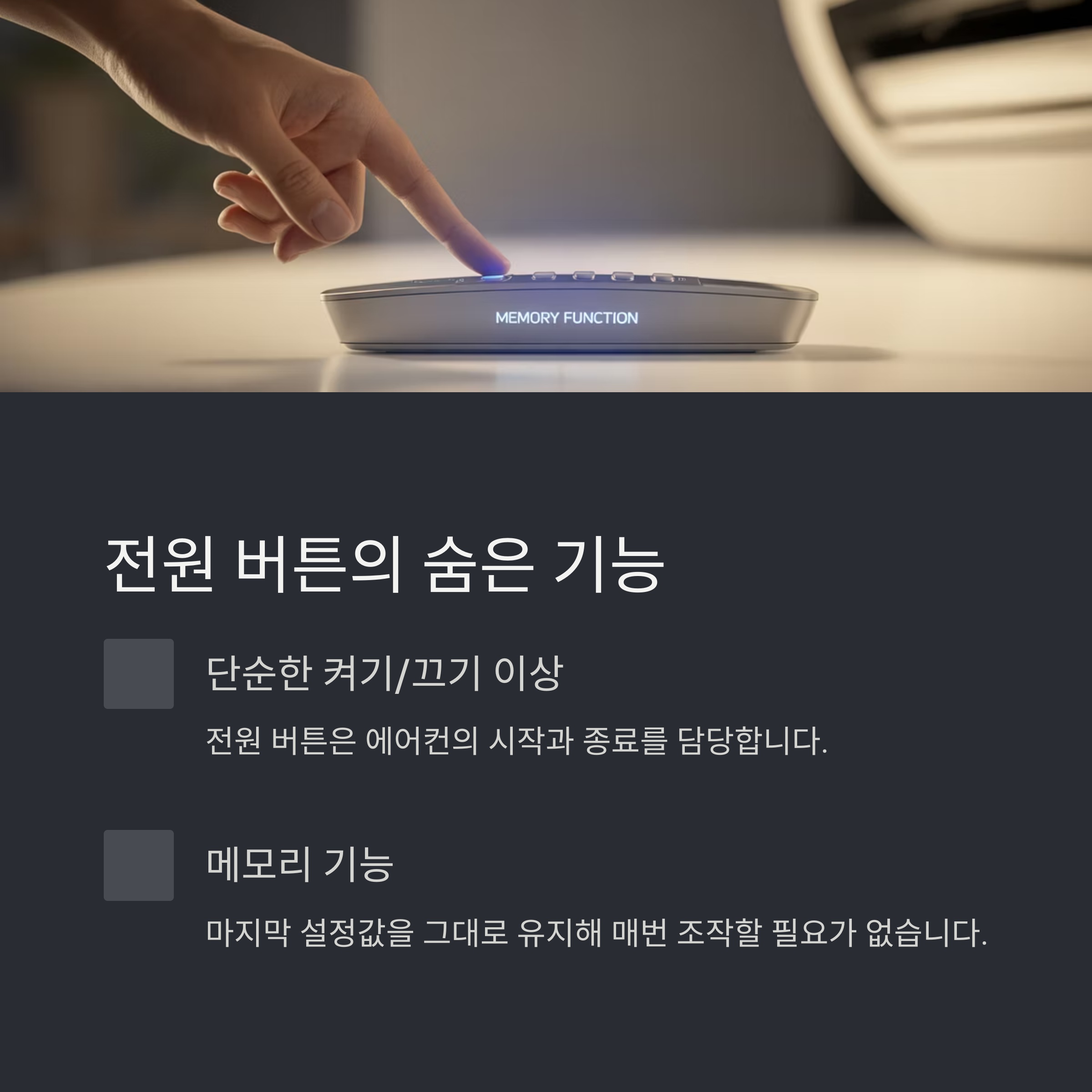 전원을 켠 후 마지막 설정값을 그대로 유지하는 '메모리 기능'도 탑재되어 있는 모델이 많습니다.