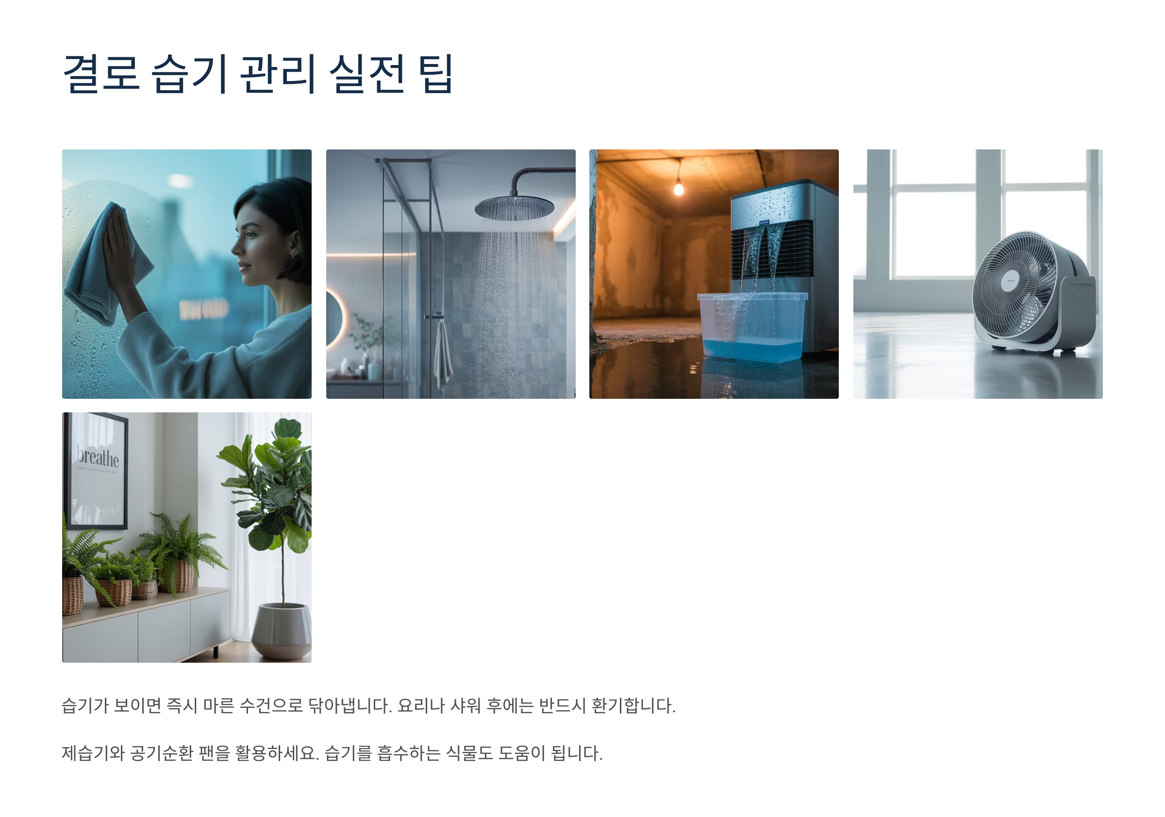 | 환기 | 창문/문 열기 | 습도 낮춤 | 무료 | 필수 |