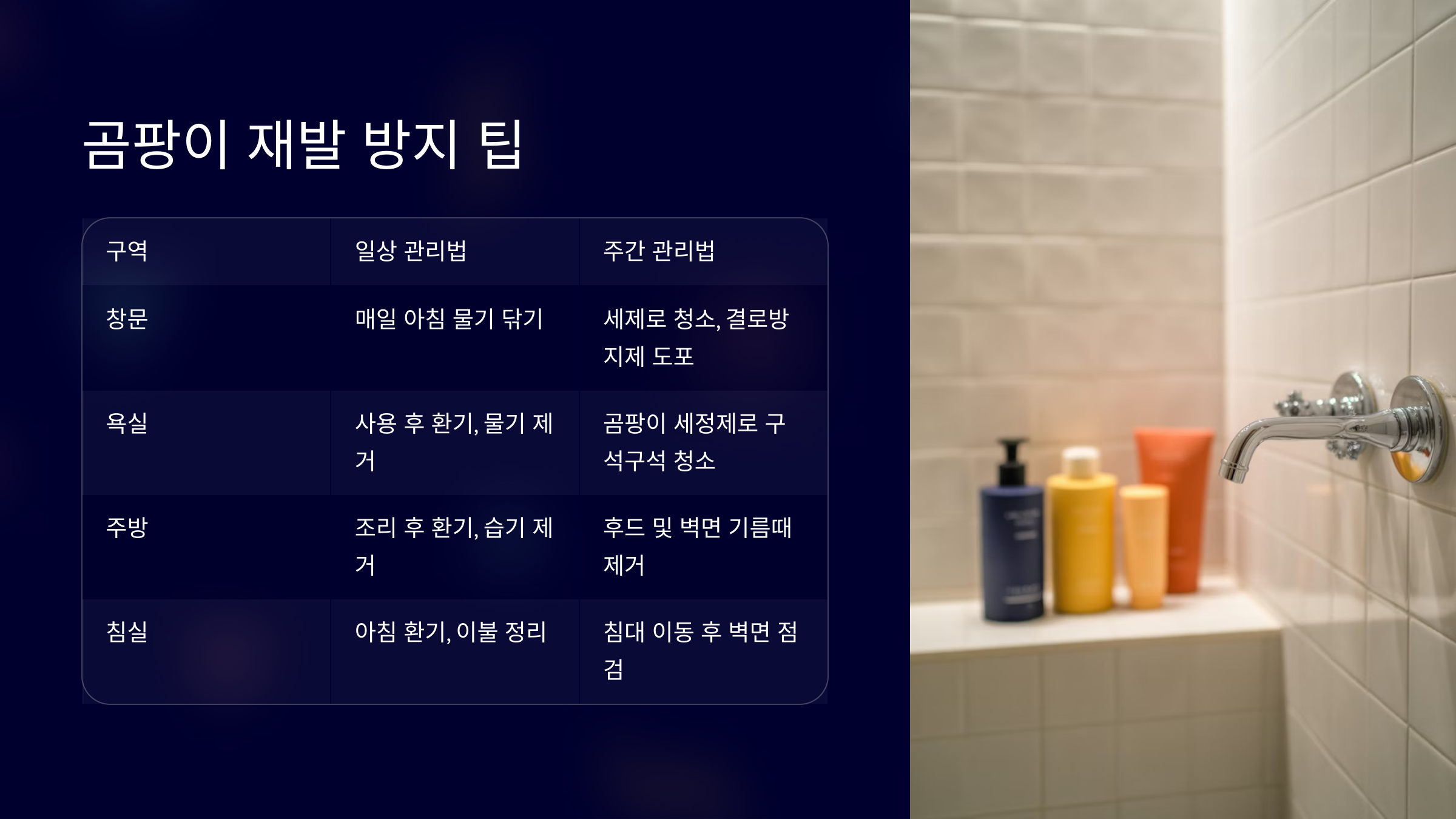 🍏 곰팡이 방지 방법 요약표
