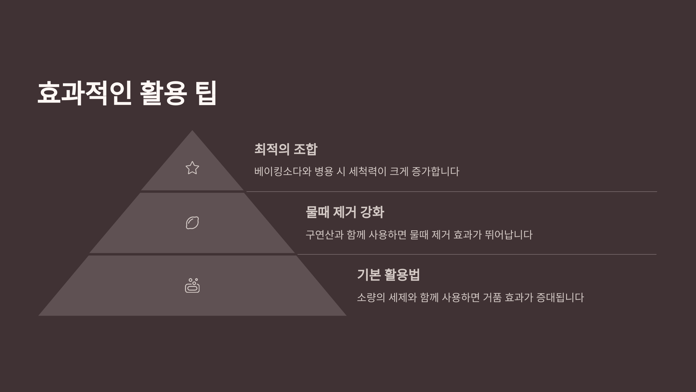 | 탄산나트륨 | 세척력 향상 | 알칼리로 기름때 중화 |