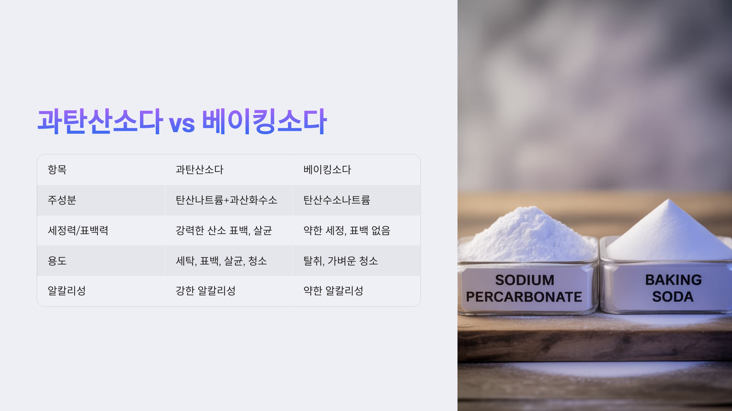 📊 과탄산소다 vs 베이킹소다 비교표