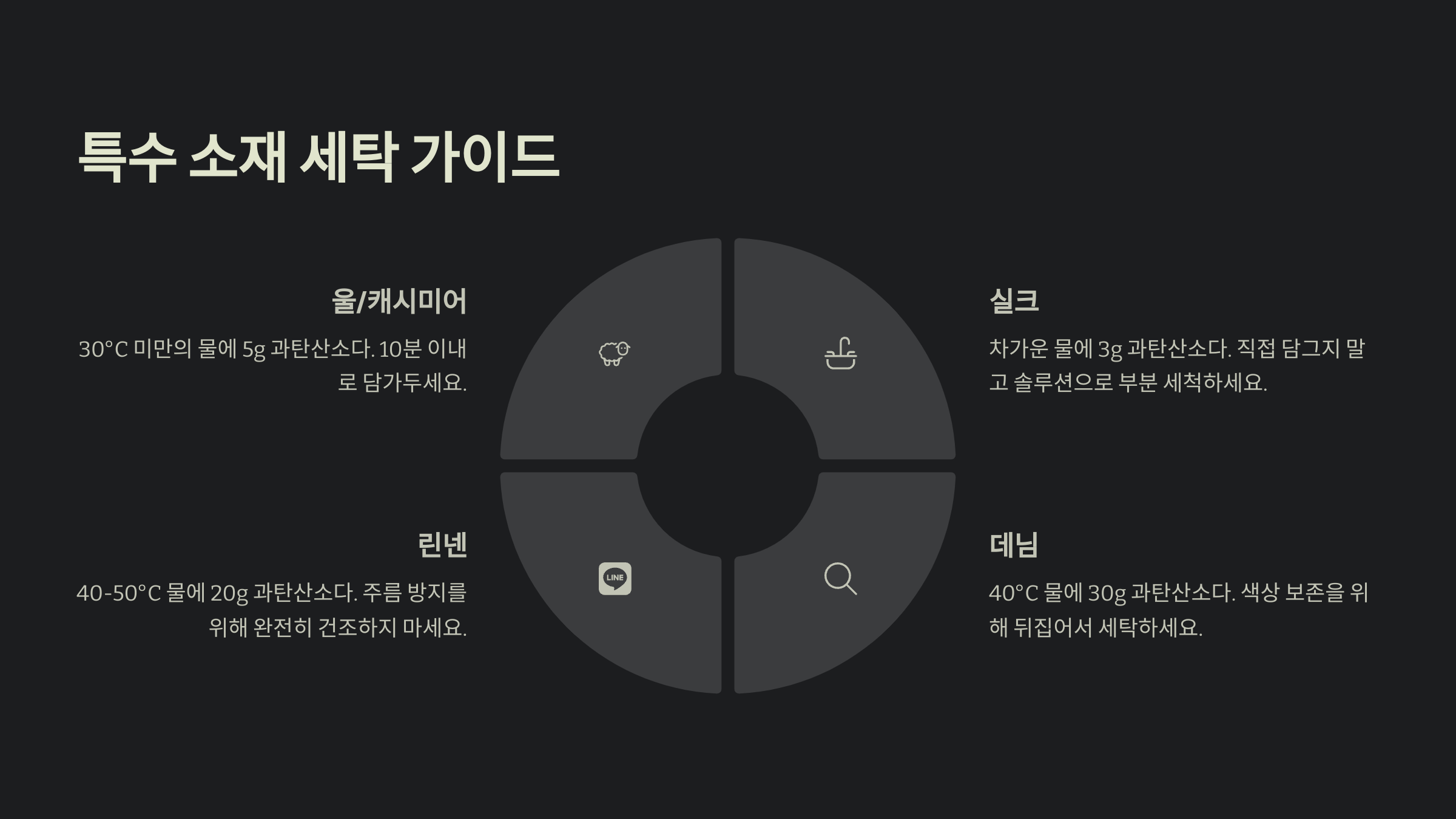 | 애벌빨래 | 30~50g | 50~60℃ | 1시간 내외 담금 |