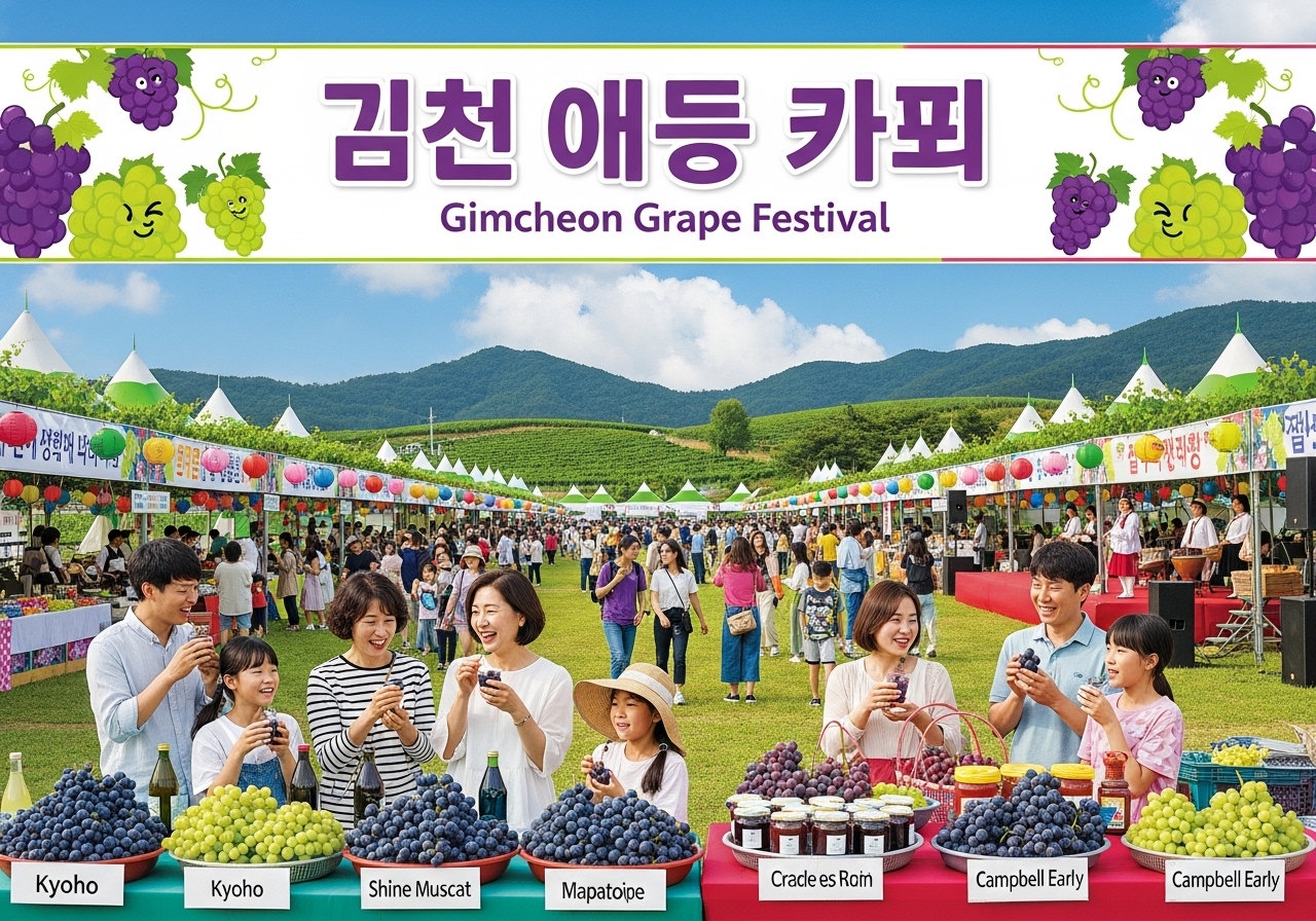 - ✅ 2026 김천 포도축제는 8월 14일(금)~16일(일) 김천종합스포츠타운에서!