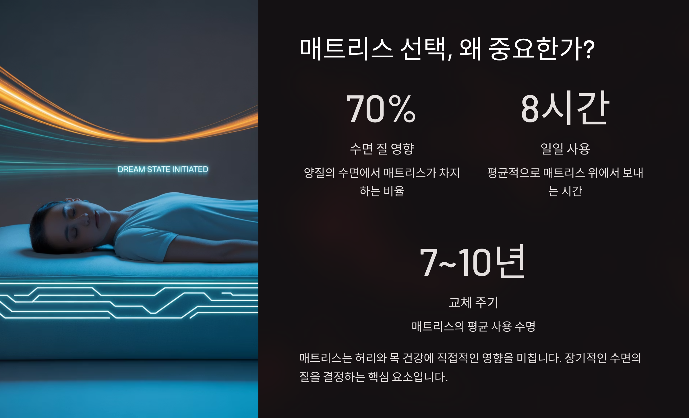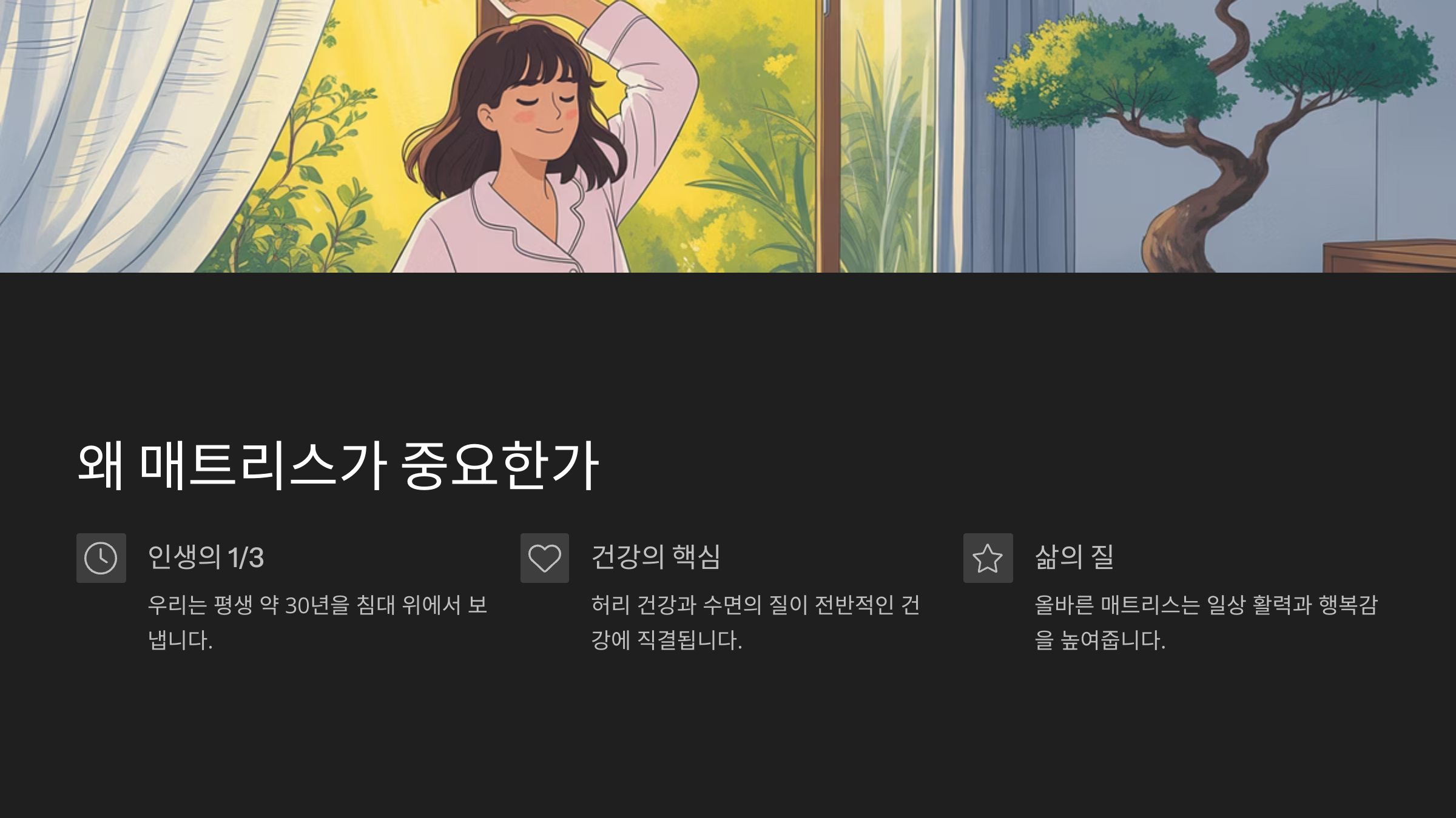 하루의 1/3을 보내는 침대, 그런데 혹시 아침마다 허리가 뻐근하거나 피곤한 느낌이 드시나요? 그렇다면 지금 사용 중인 매트리스가 내 몸에 맞지 않는 걸 수도 있어요. 매트리스는 단순한 ‘침구’가 아니라 우리의 수면의 질과 척추 건강까지 좌우하는 중요한 아이템이에요!