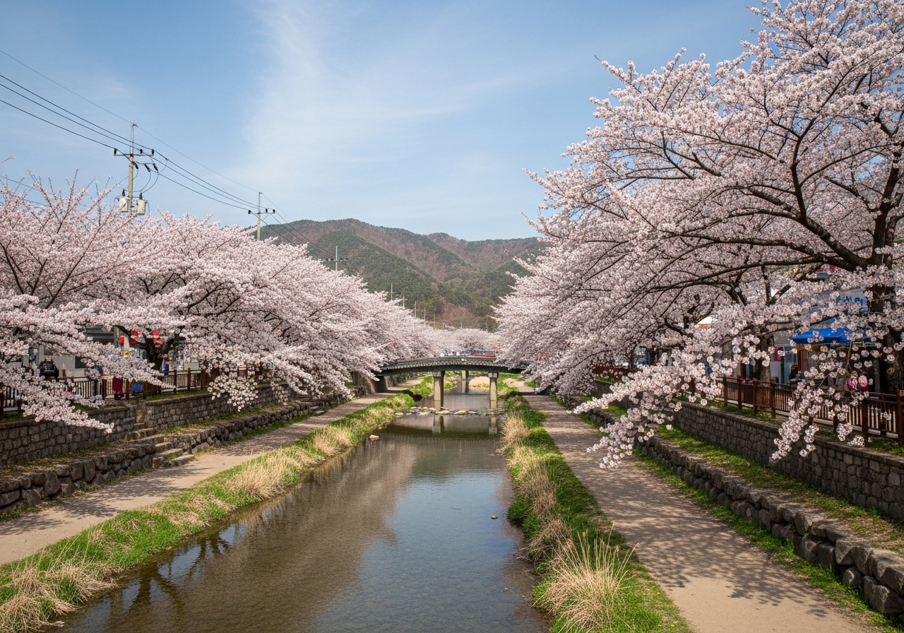 온천천 시민공원은 부산의 대표적인 도심 벚꽃 명소예요. 긴 강변을 따라 벚나무가 빼곡히 심어져 환상적인 벚꽃 터널을 이룬답니다. 낮에는 산책이나 자전거를 즐기기 좋고, 밤에는 조명과 어우러져 로맨틱한 분위기를 연출해요. 주변 카페와 맛집도 많아 벚꽃 구경 후 즐기기 좋아요.