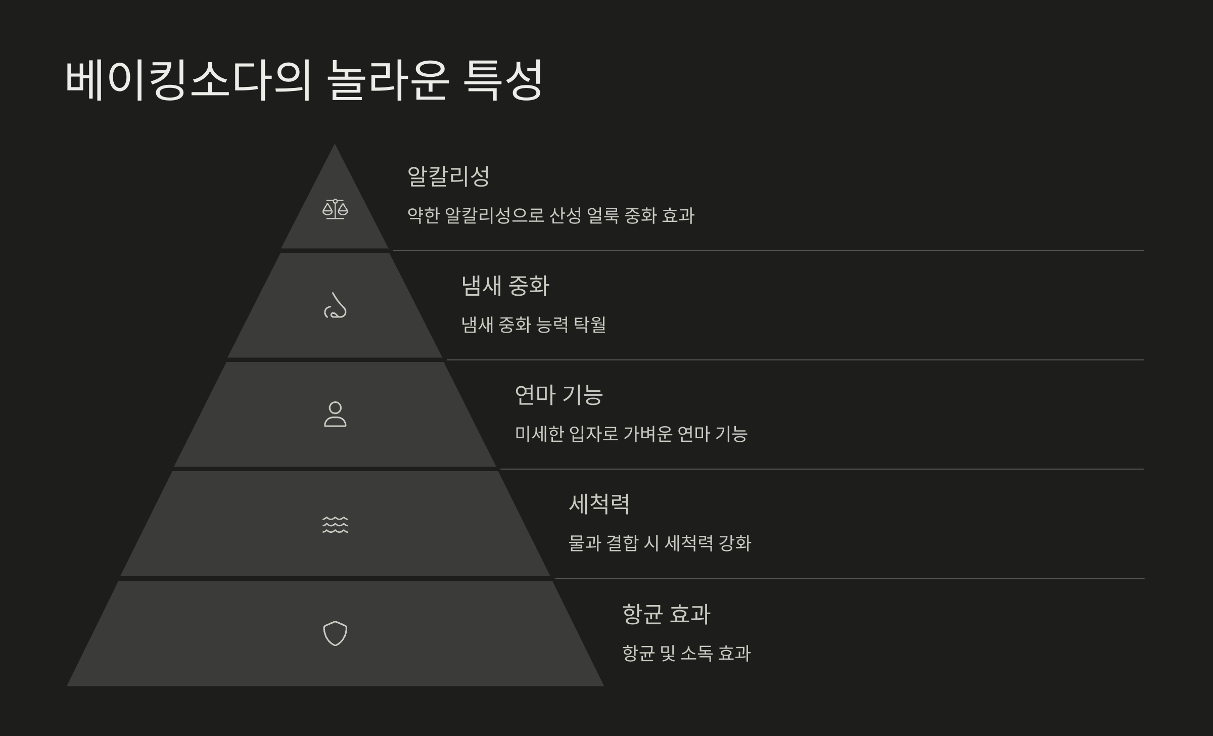 이러한 특성 덕분에 베이킹소다는 식품 첨가물(빵 만들 때 부풀리는 용도)로 사용될 뿐만 아니라, 세정, 탈취, 미백 등 다양한 용도로 우리 일상생활에서 활용될 수 있어요. 진짜 알면 알수록 매력적인 아이템이 아닐 수 없습니다! 😉