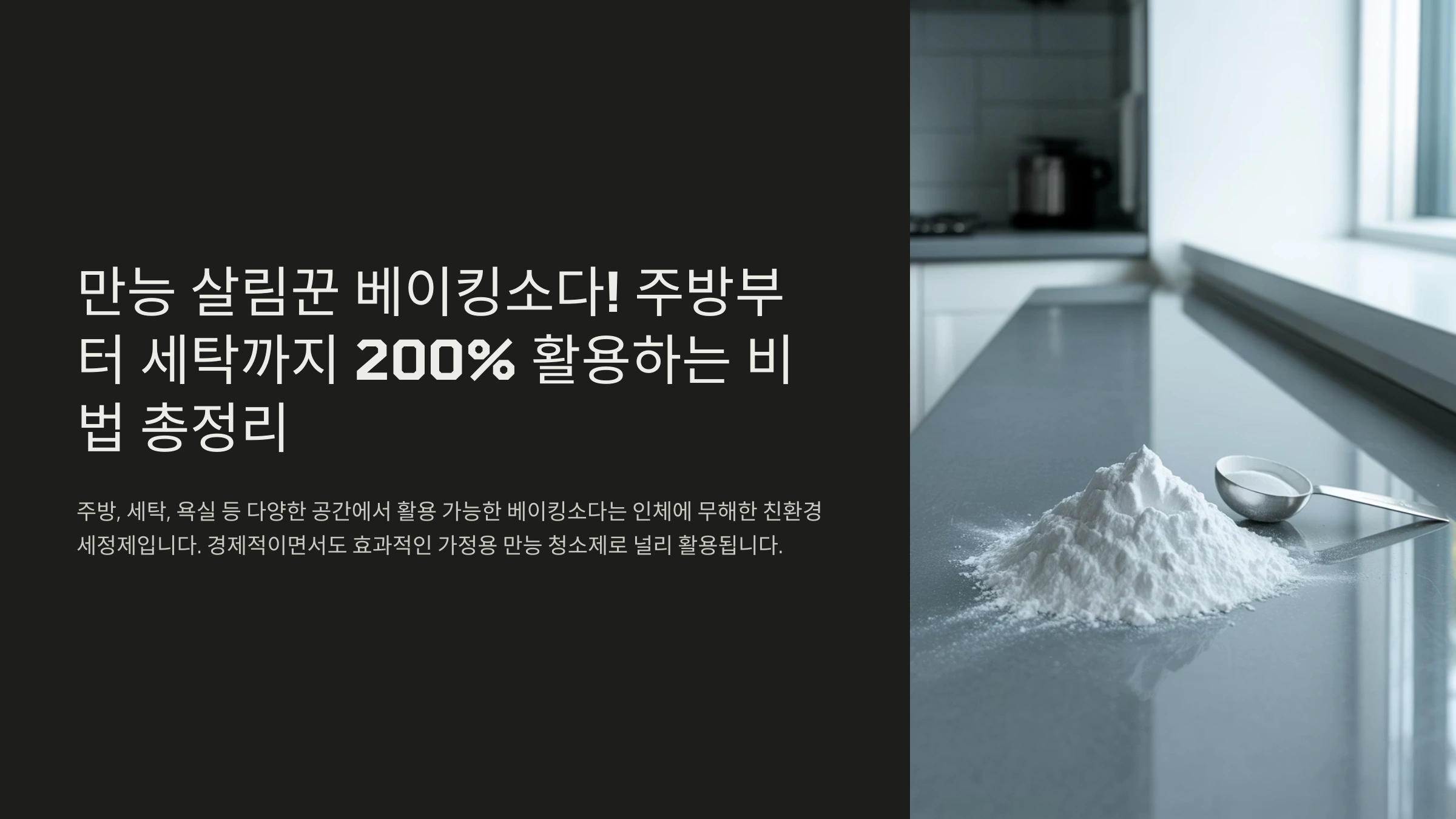 진짜 뭐랄까, 이 작은 가루 하나가 우리 집안 구석구석을 깨끗하게 해주고, 냄새까지 잡아주는 만능 살림꾼이더라고요! 심지어 친환경적이라 아이 있는 집에서도 안심하고 사용할 수 있다는 점이 진짜 최고인 것 같아요. 👍 오늘은 제가 직접 써보고 효과 본 베이킹소다 활용법을 주방부터 세탁, 청소, 그리고 특별한 팁까지! 싹 다 알려드릴게요. 자, 그럼 함께 베이킹소다의 세계로 빠져볼까요?
