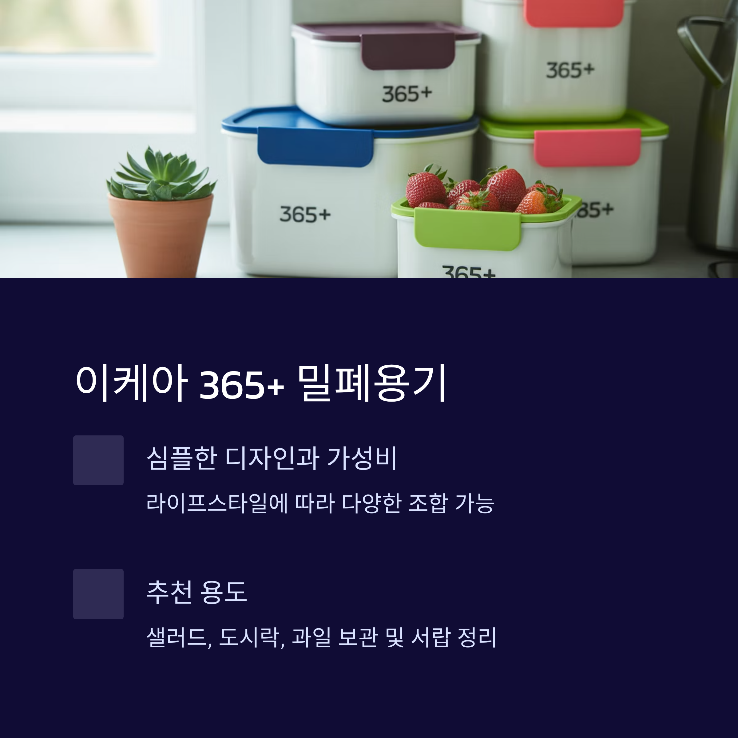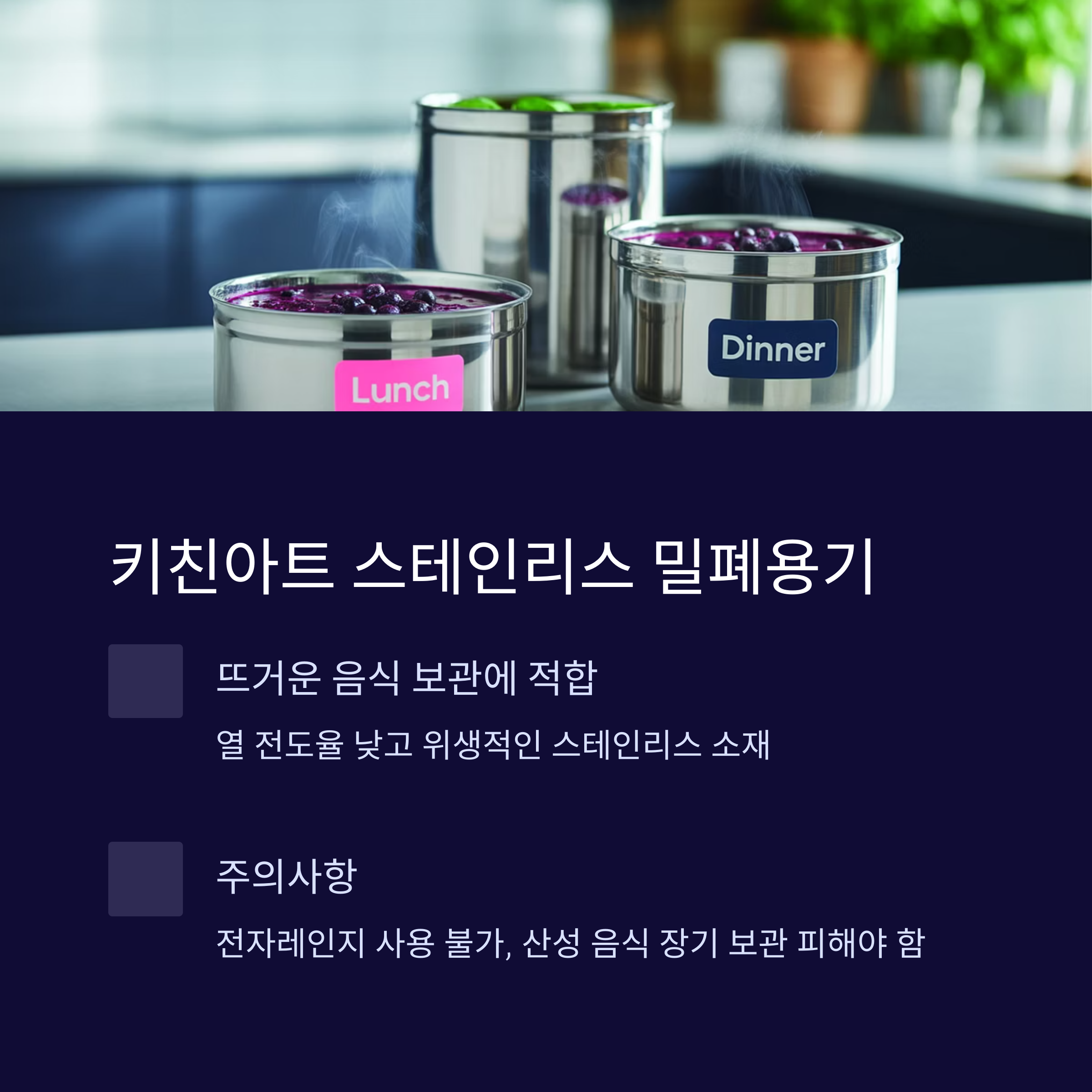 용도별로 2~3종류의 밀폐용기를 조합해 사용하는 방식이 가장 효율적입니다.