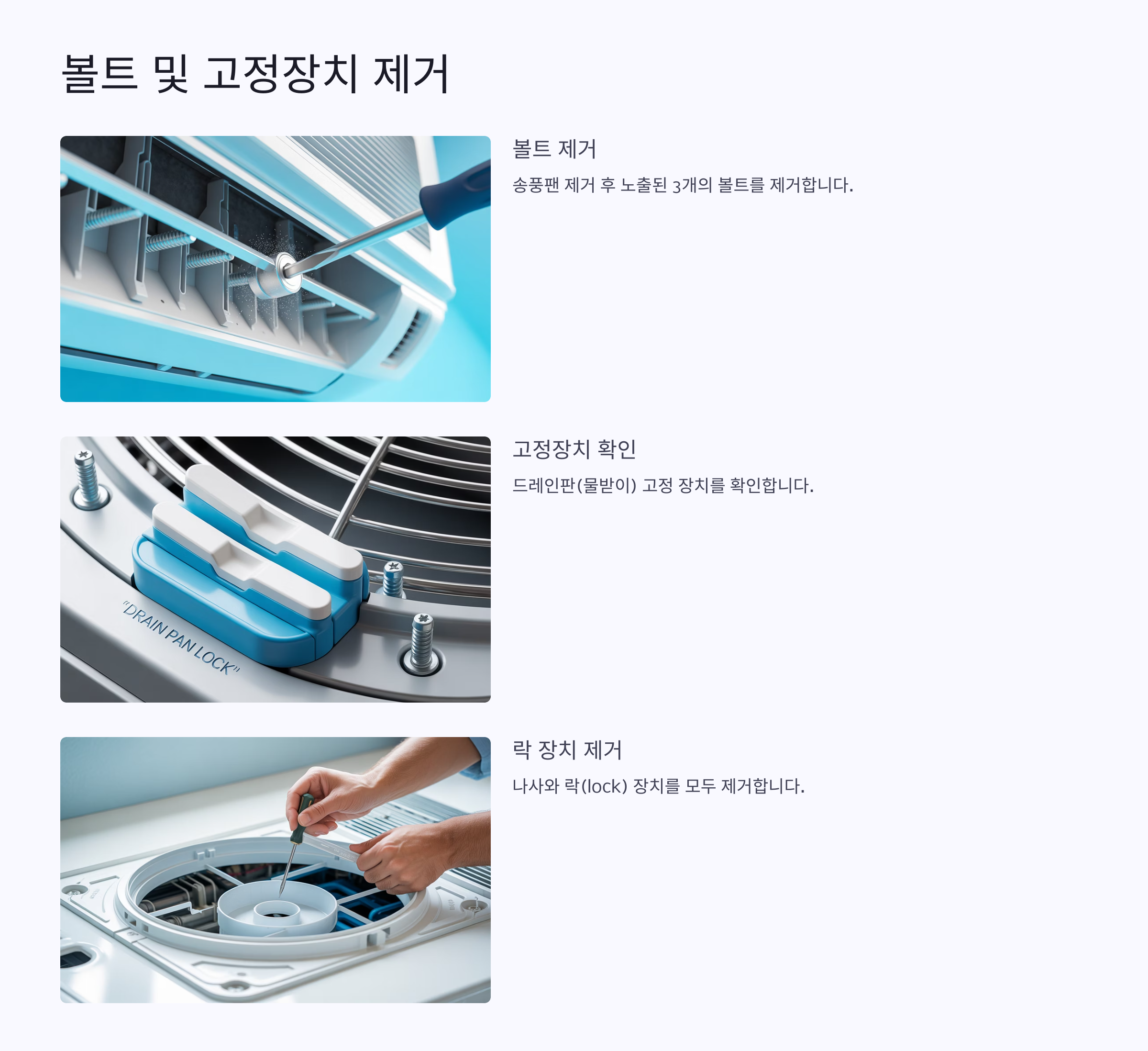 | 1 | 하단 나사 분리 | 나사 분실 방지 |