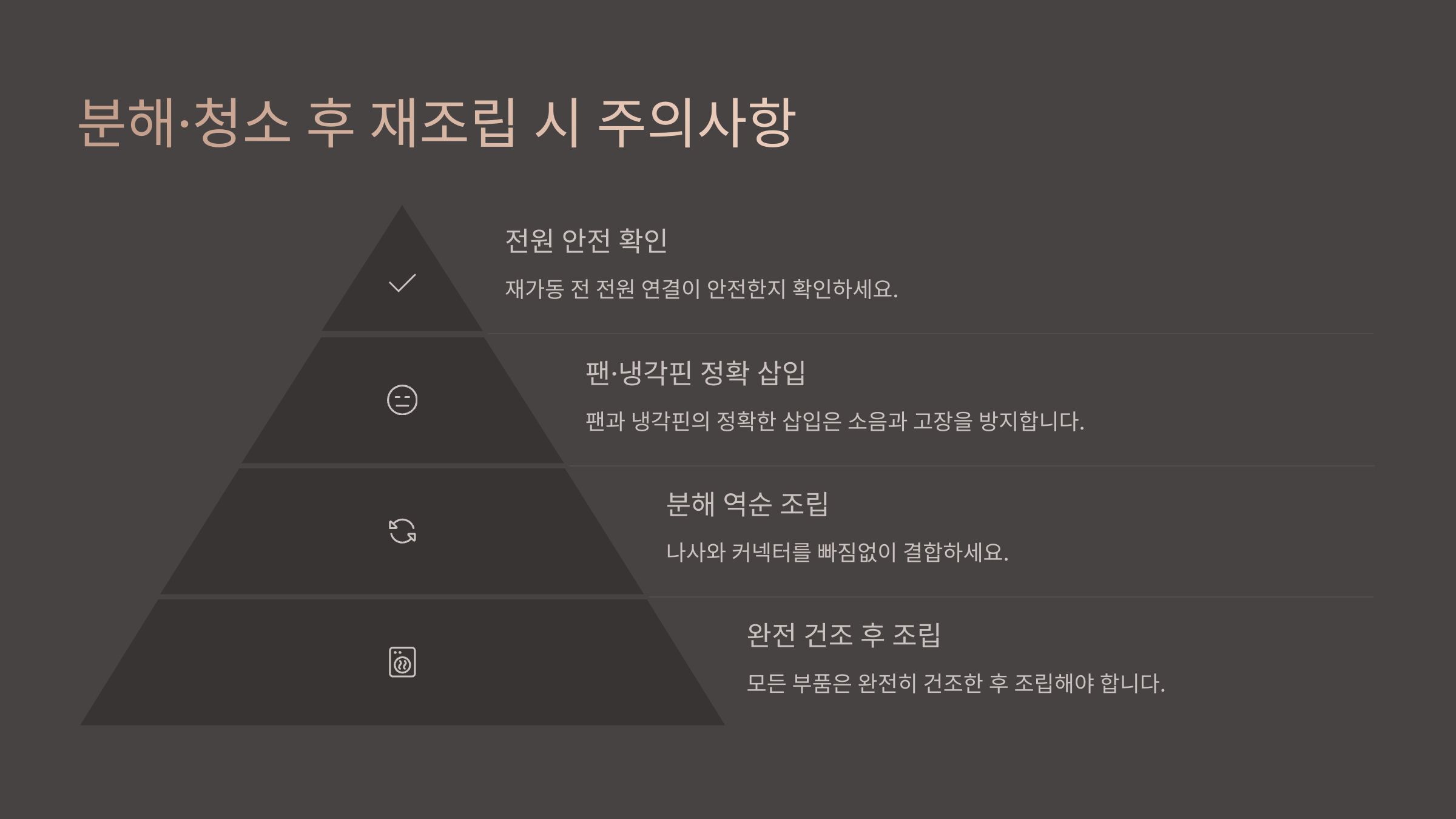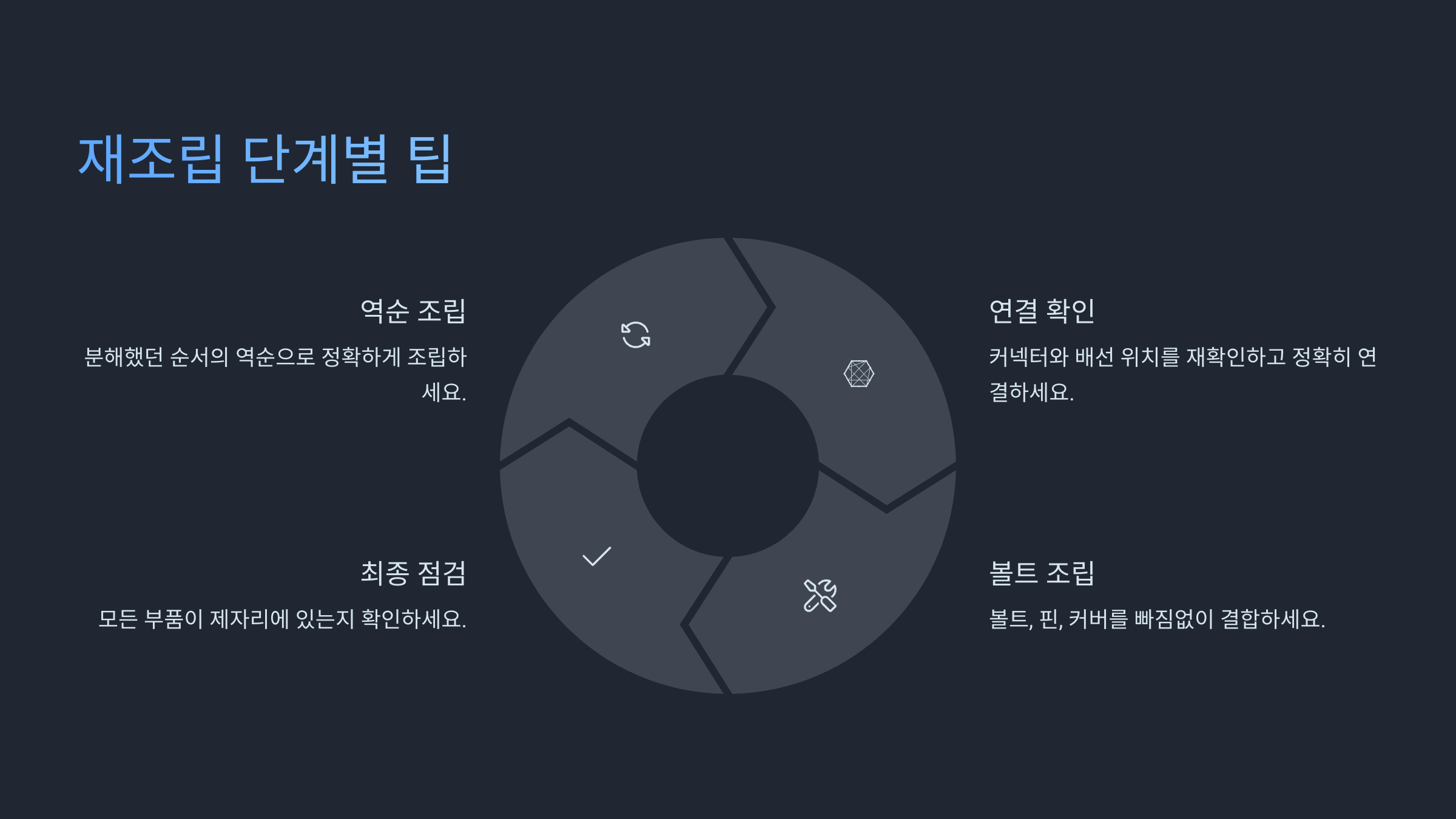 🔩 재조립 단계별 주의사항 표