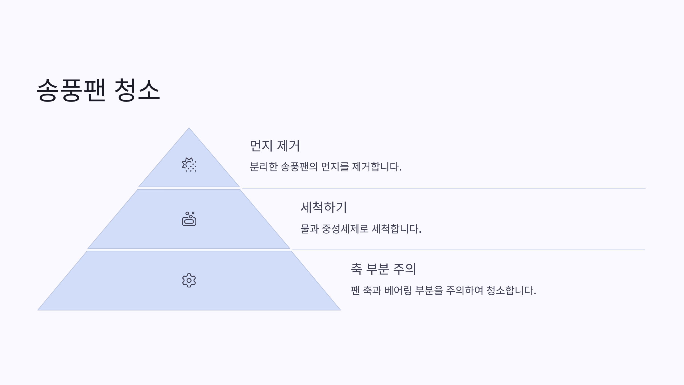 | 4 | 팬모터 주변 먼지제거 | 물 사용 금지 |