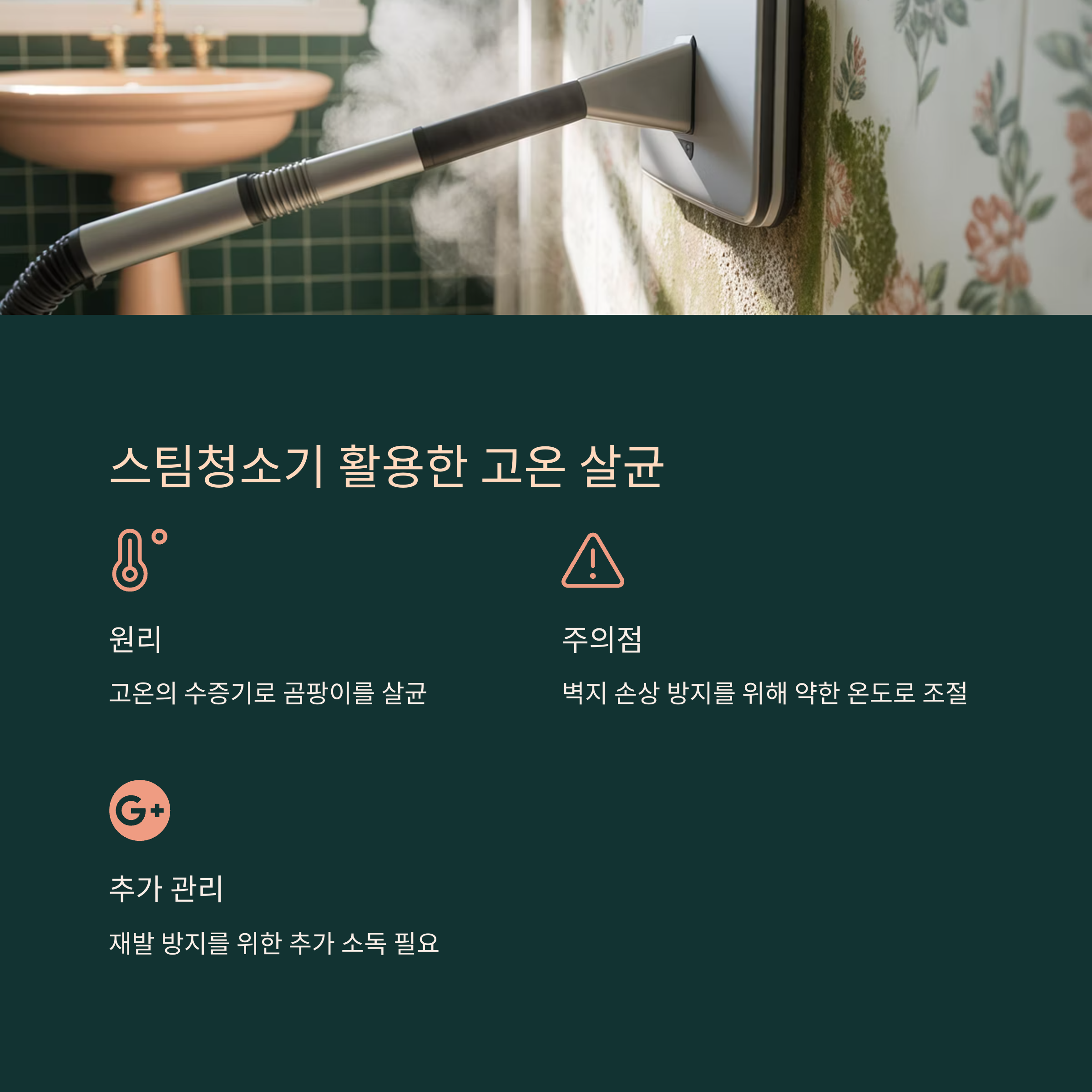 스팀청소기는 고온의 수증기로 곰팡이를 살균하는 방식입니다.