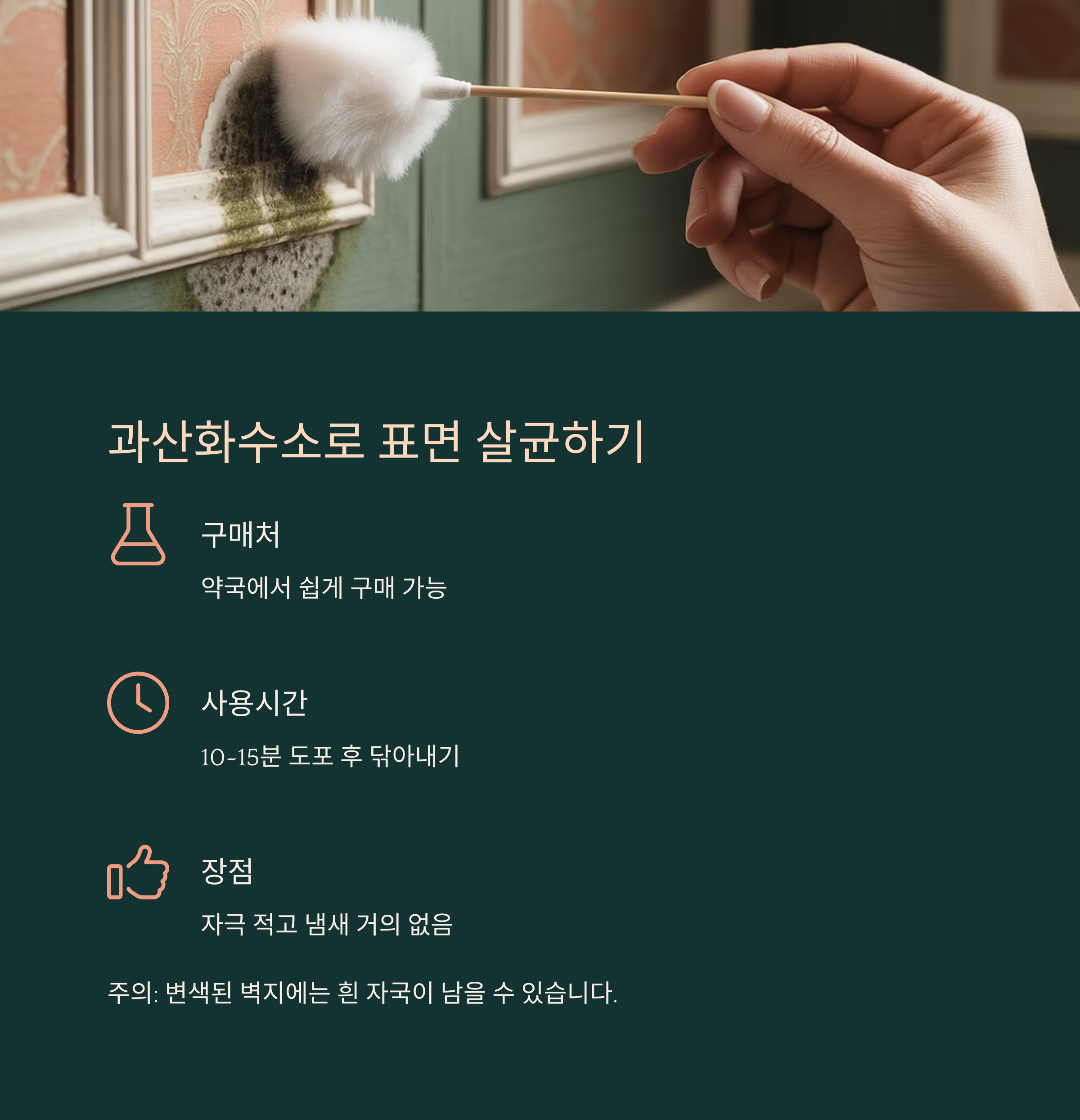 면봉이나 스프레이로 곰팡이 부위에 도포 후 10~15분 후 닦아내면 됩니다.