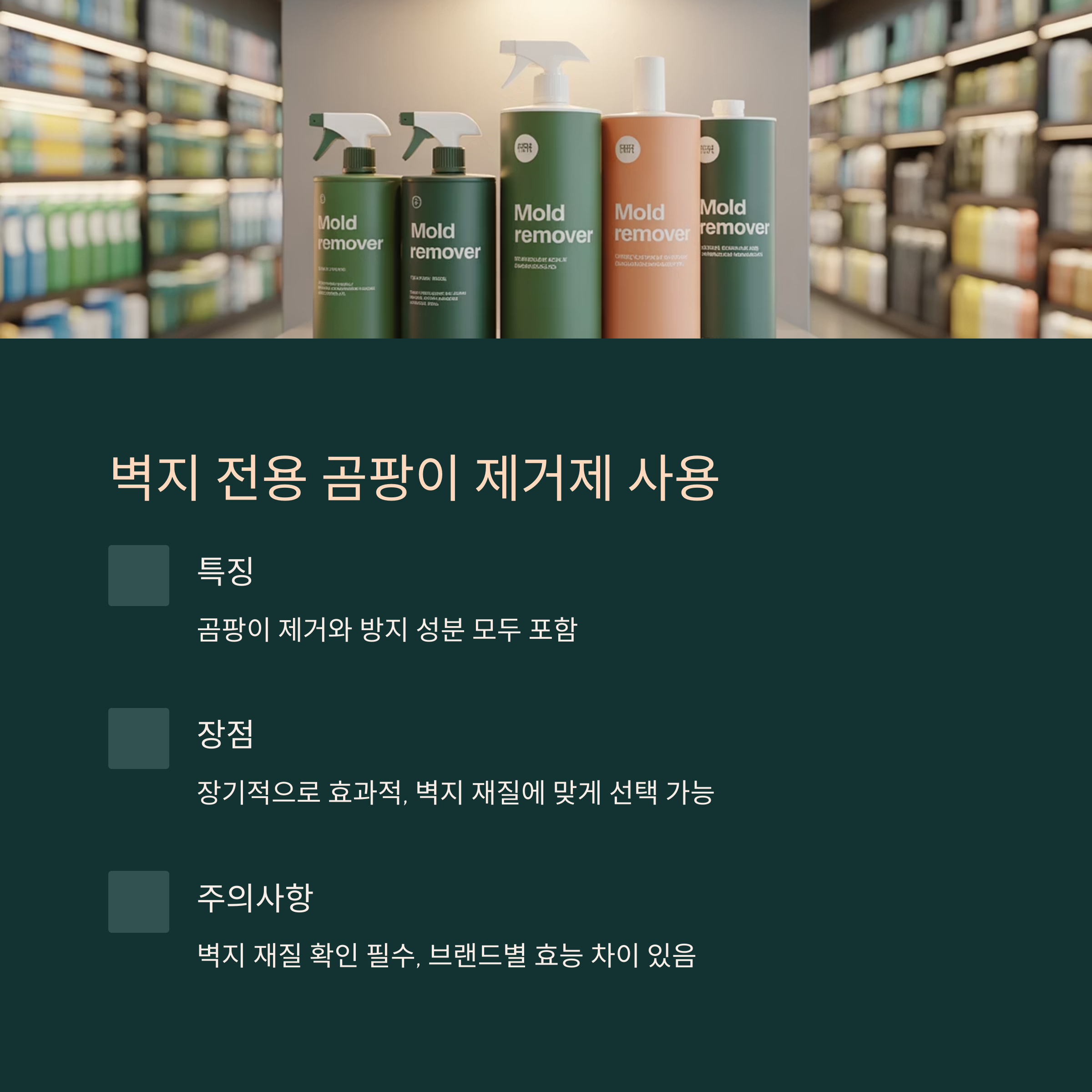 시중에는 벽지용으로 특화된 곰팡이 제거제가 많이 나와 있습니다.