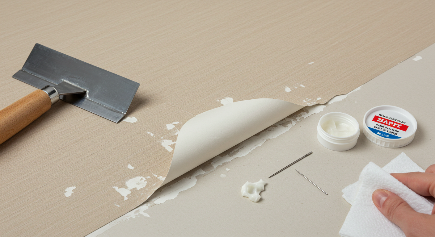 - 벽지 종류 확인: 실크 벽지나 합지 벽지 등 벽지 종류에 따라 접착제나 수리 방법이 약간 다를 수 있어요. 특히 실크 벽지는 방수 코팅이 되어 있어 물을 사용하지 않는 것이 좋아요.