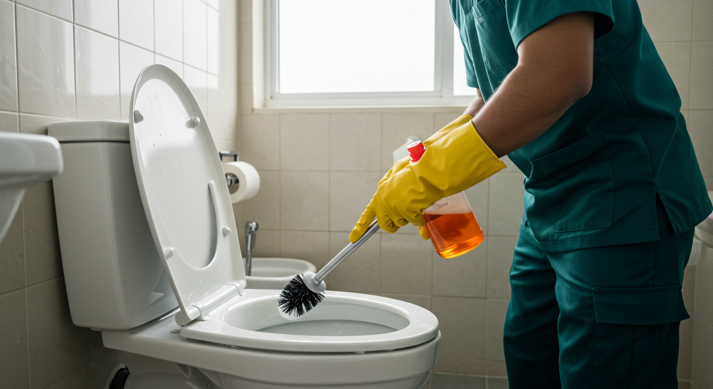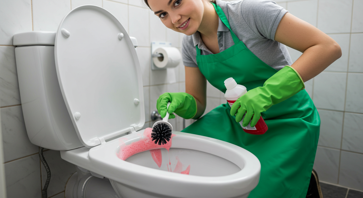 - 준비물: 과탄산소다, 뜨거운 물(50~60°C), 고무장갑, 변기솔