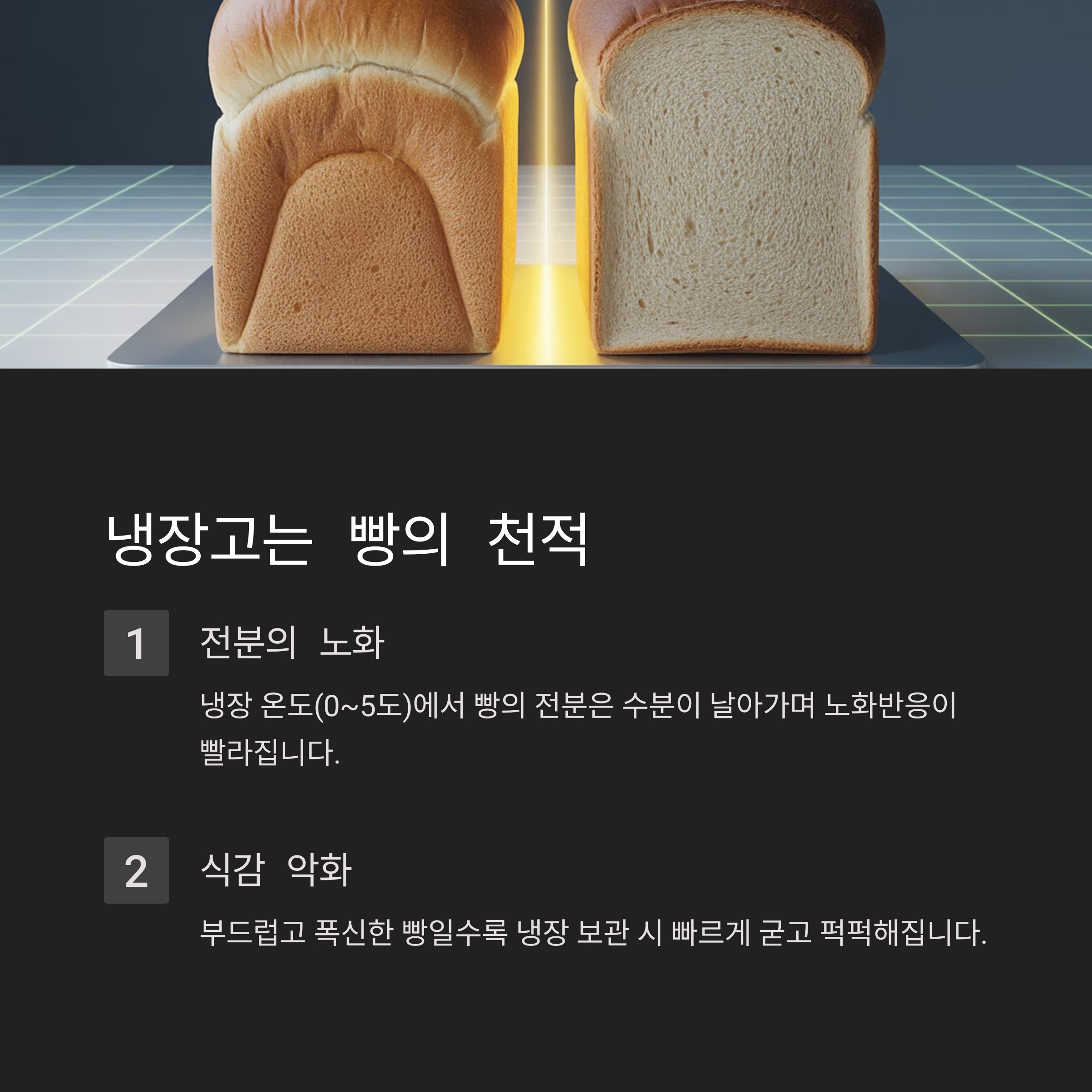 하지만 의외로 냉장 보관은 빵을 더 빨리 굳게 만드는 주범이라는 사실, 알고 계셨나요?