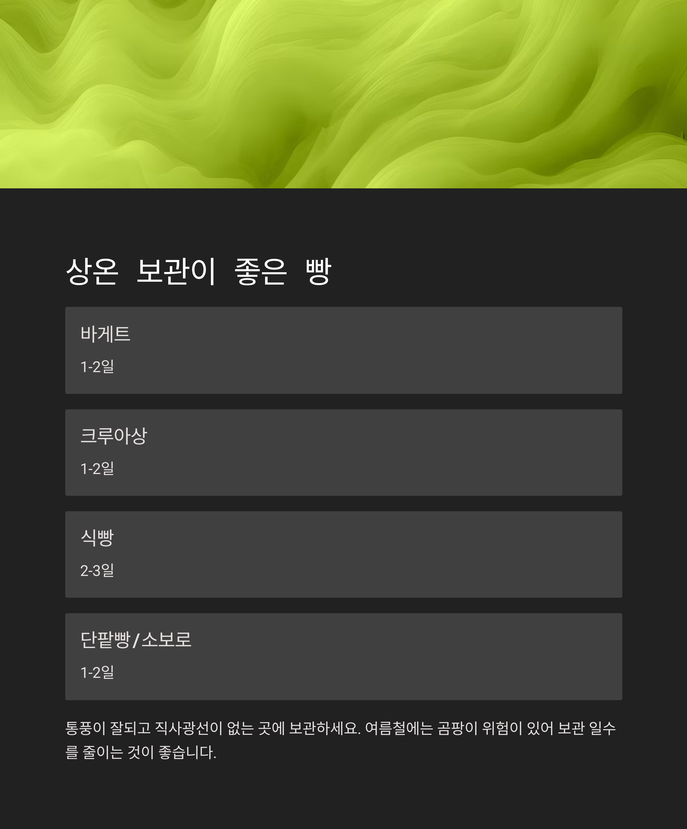 빵 종류 상온 보관 가능 기간