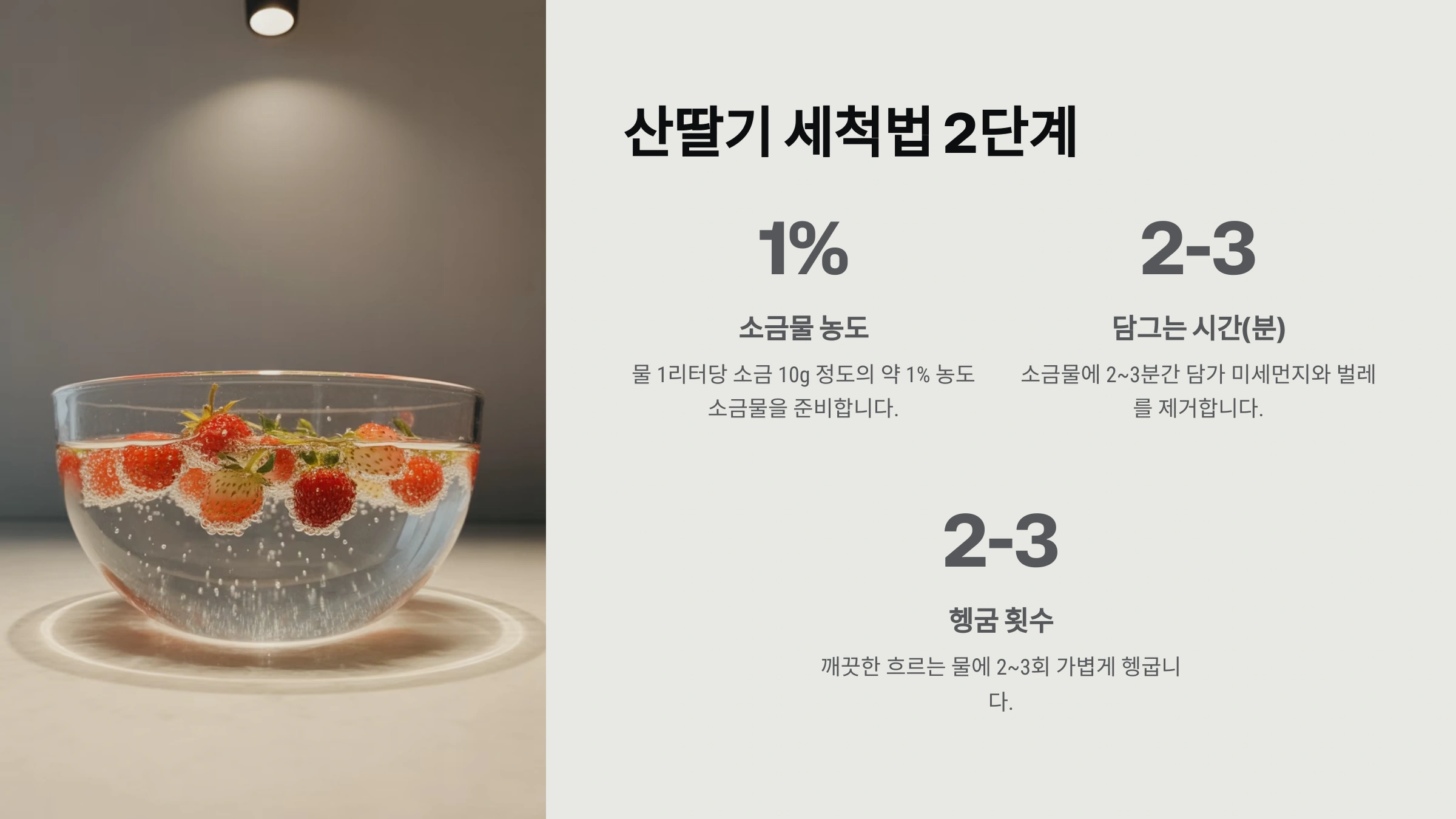 자, 이제 먹기 직전이 되었다면 어떻게 씻어야 할까요? 흐르는 물에 박박 씻다가는 공주님 같은 산딸기가 다 뭉개져 버릴 수 있어요. 보이지 않는 곰팡이 포자까지 제거하고, 과육은 살리는 스마트 세척법을 알려드릴게요.