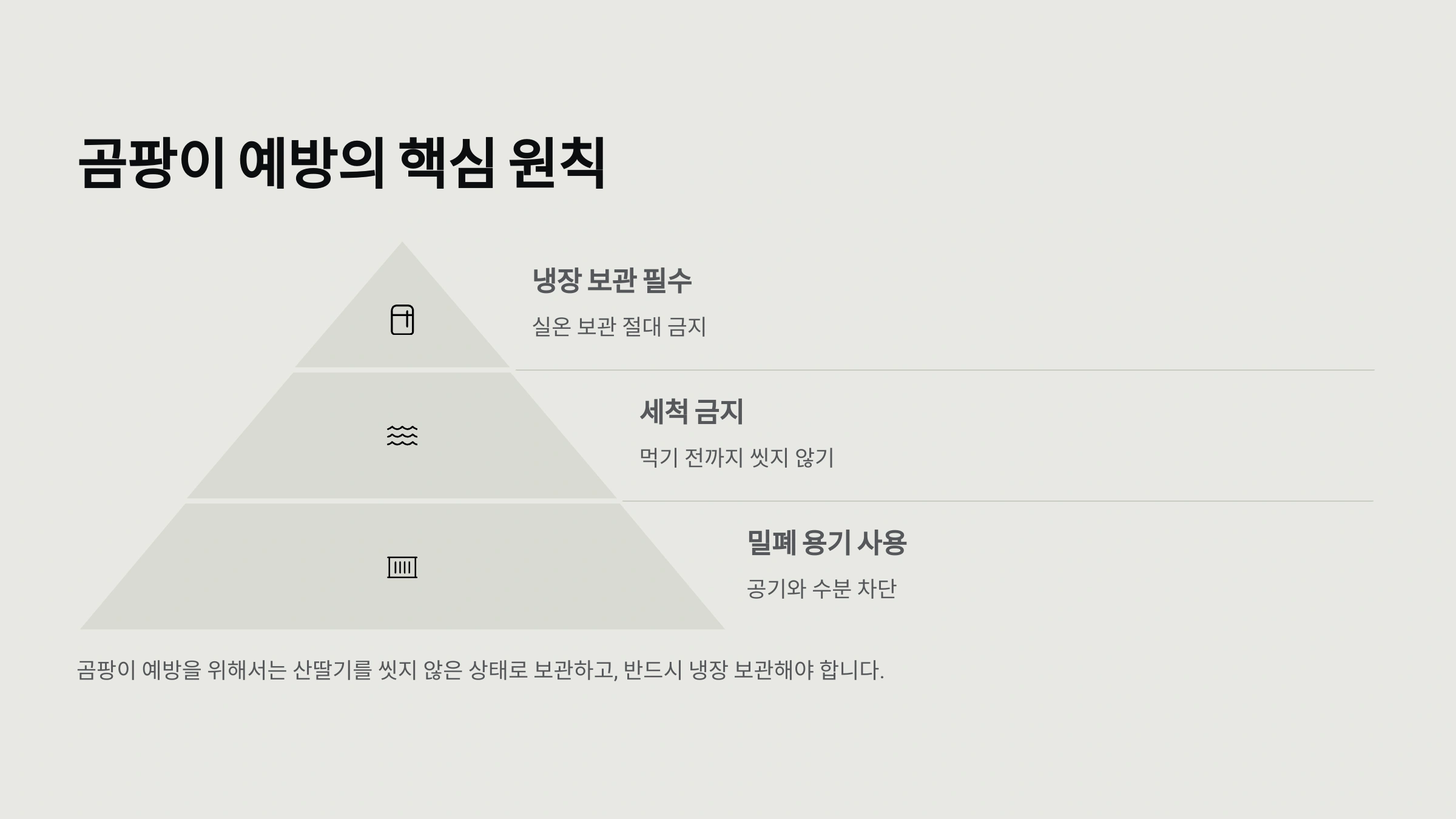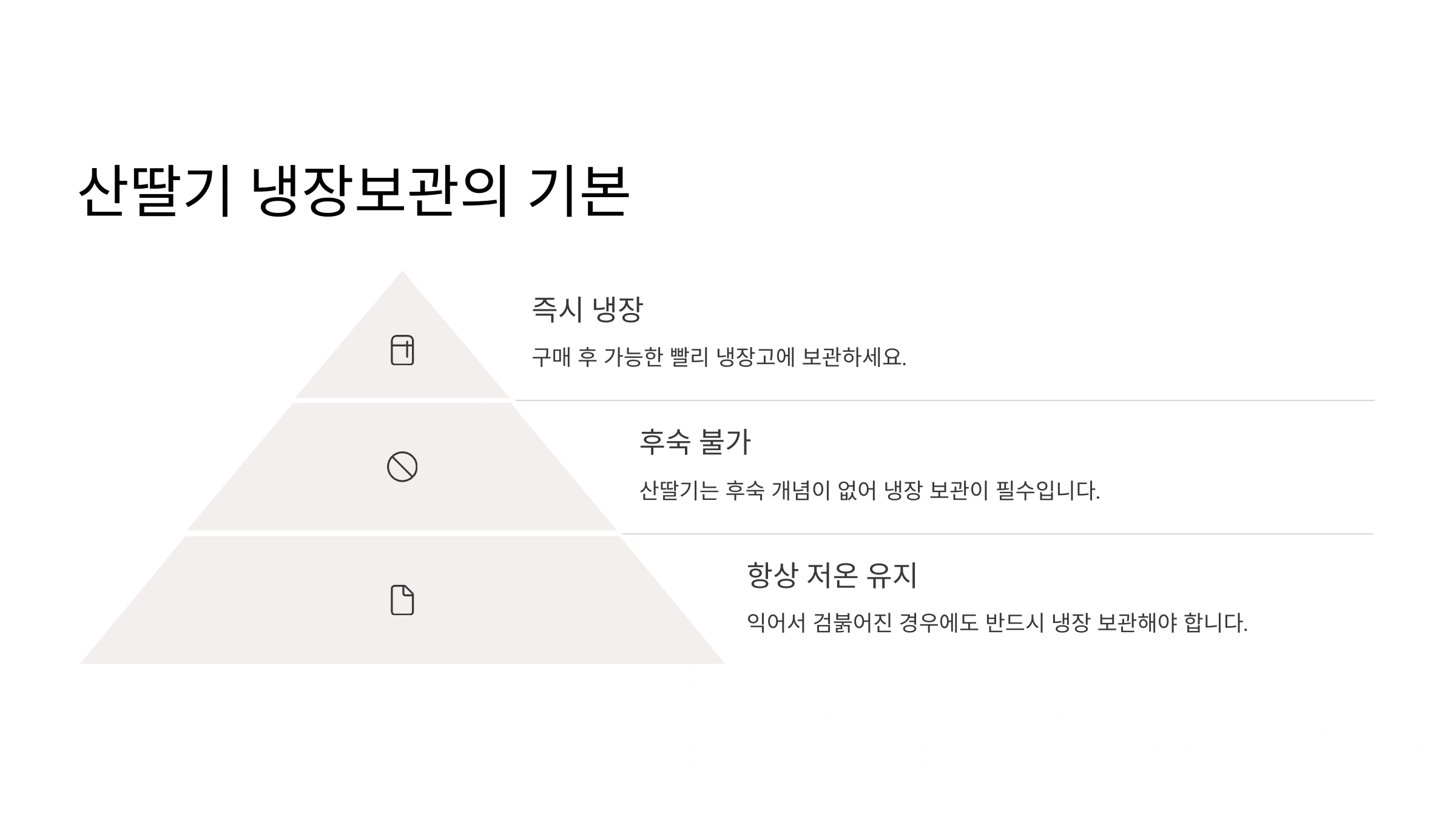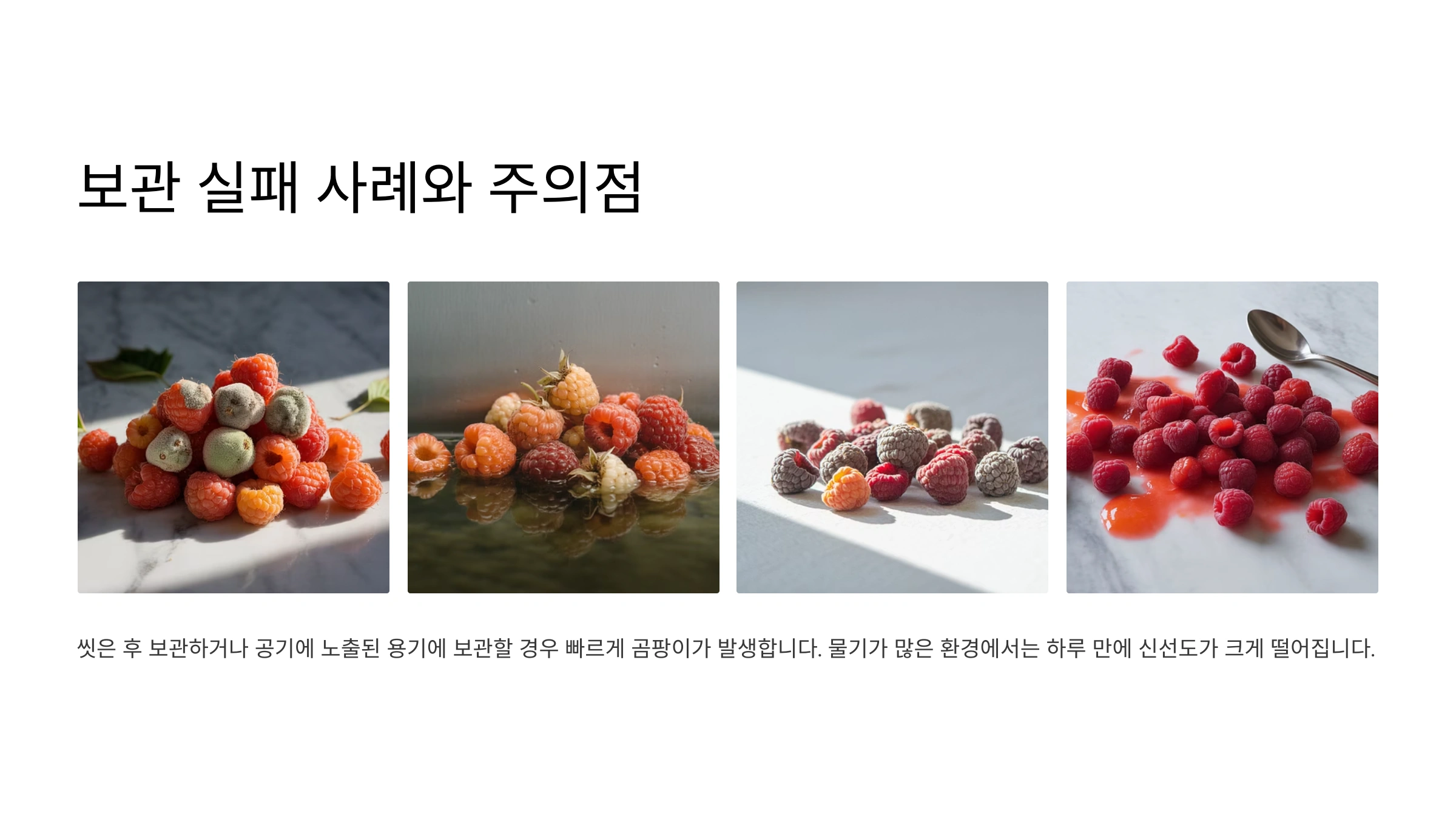 산딸기의 가장 큰 적은 '수분'과 '압력'이에요. 모든 세척법과 보관법은 이 두 가지를 어떻게 피하느냐에 달려있다고 생각하시면 이해하기 쉬워요.