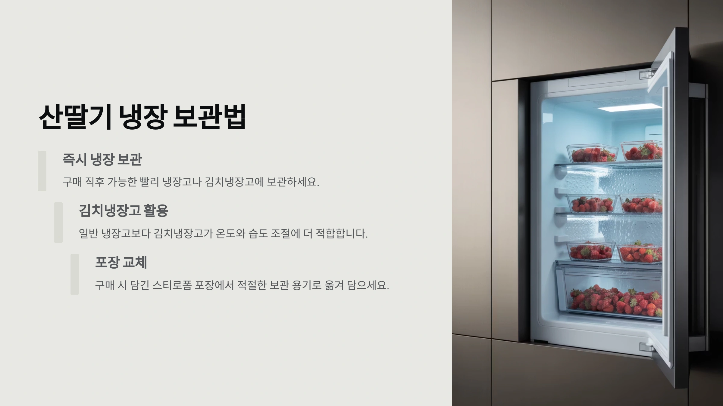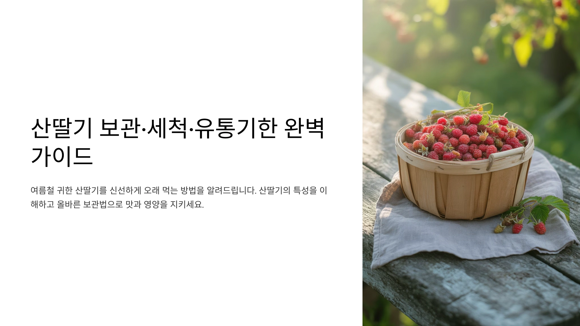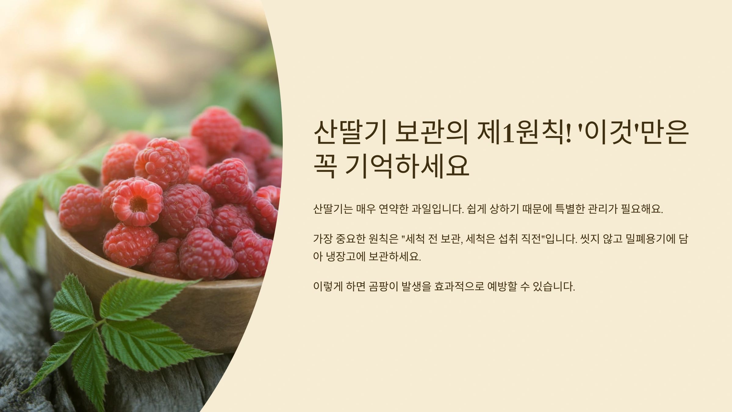 산딸기는 과육이 매우 부드럽고 수분에 약해서 '과일계의 공주님'이라 불릴 만큼 다루기 까다로운데요, 몇 가지 핵심 원칙만 알면 생각보다 오랫동안 신선함을 유지할 수 있어요! 지금부터 여러분의 소중한 산딸기를 지켜줄 특급 비법을 모두 공개할게요!