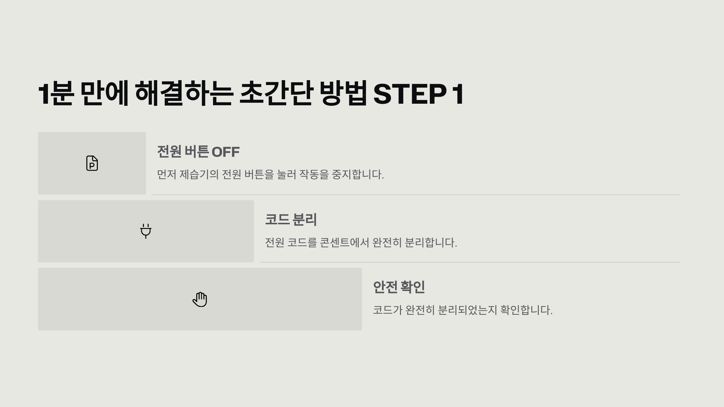 - 벽에 꽂힌 전원 플러그를 완전히 뽑아주세요.