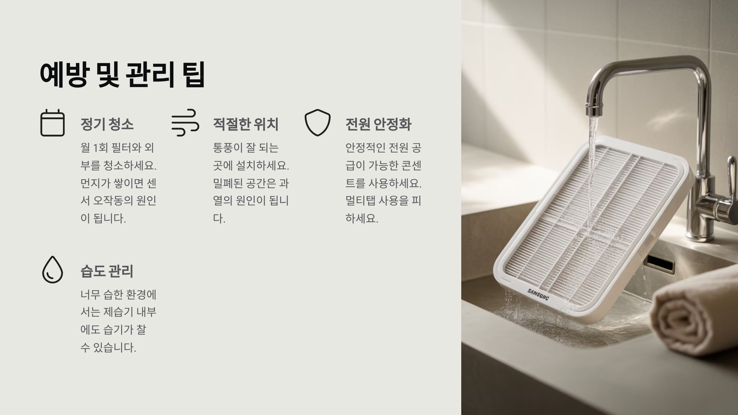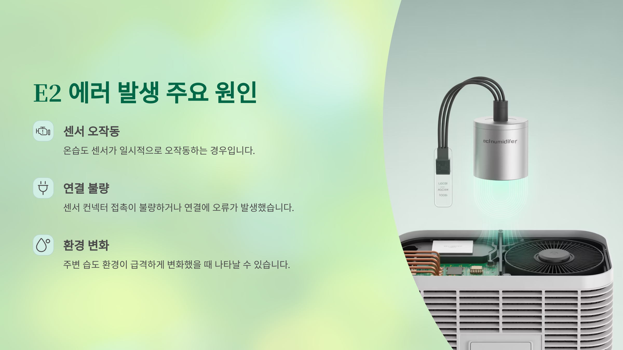 삼성전자 공식 홈페이지의 설명에 따르면, E2 에러는 제품의 온도와 습도를 감지하는 센서 부분에 이상이 생겼을 때 발생하는 신호예요. 한마디로 제습기의 '눈'이나 '코' 역할을 하는 센서가 "나 지금 뭔가 이상해!"라고 우리에게 알려주는 거죠.