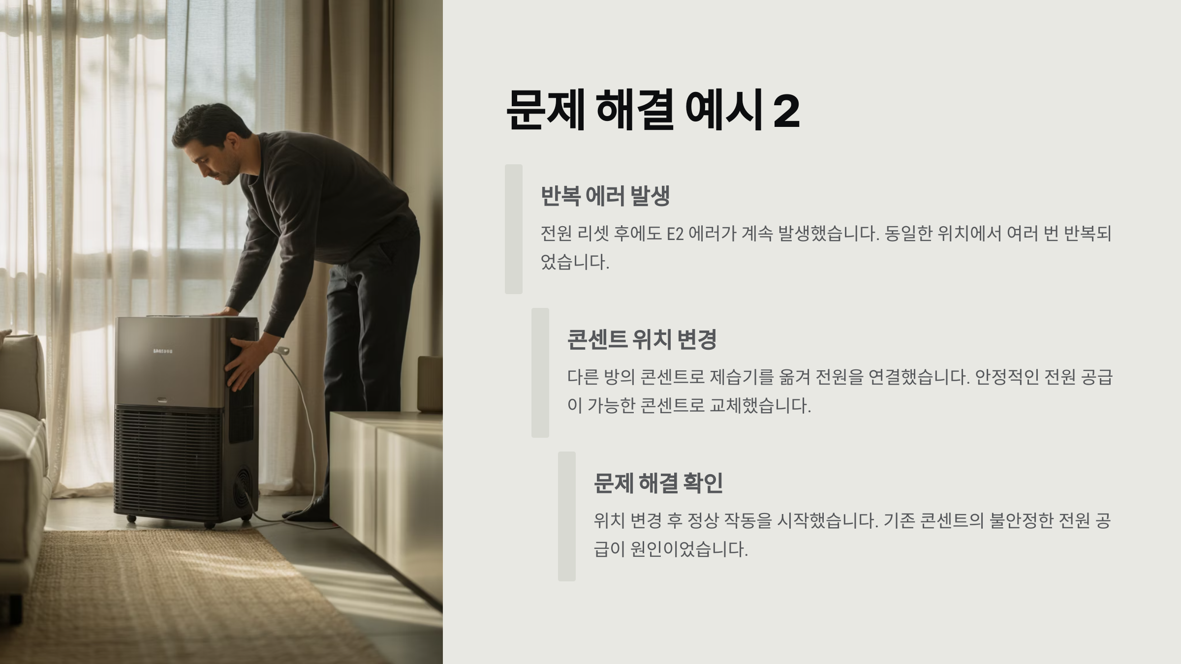 5. 삼성 제습기 E2 에러 핵심 요약 📝