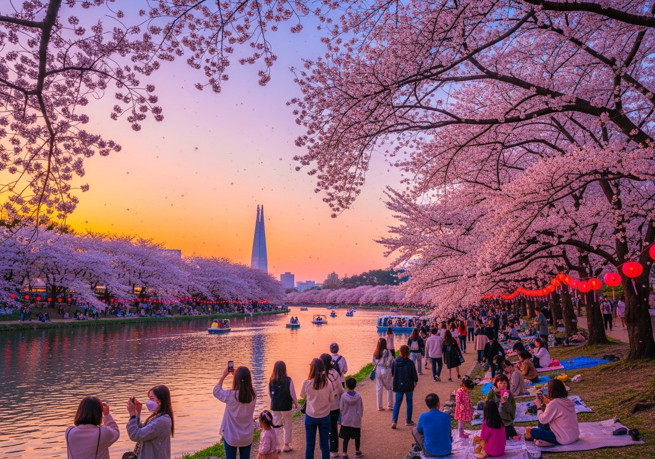 ✅ 장소: 서울 송파구 석촌호수 동호·서호 일원, 롯데월드타워 배경의 환상적인 벚꽃 터널!