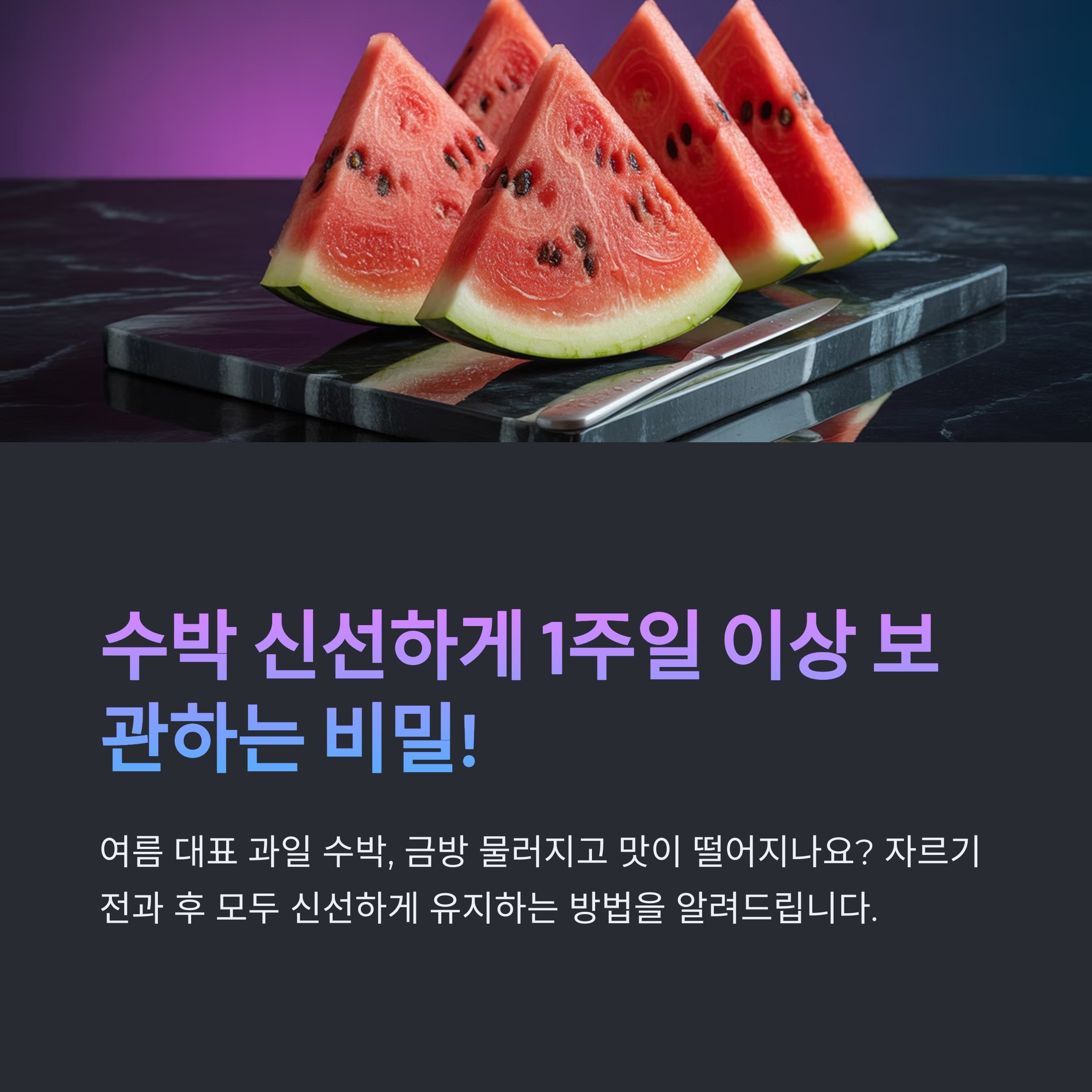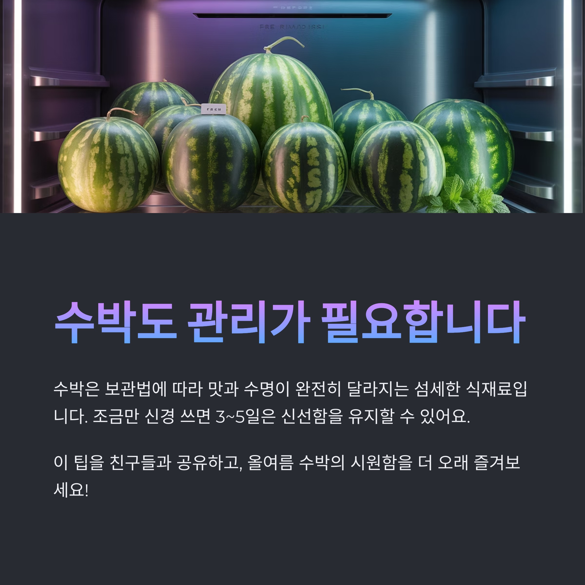 수박은 단순히 시원하게 먹는 여름 과일이 아니라, 보관법에 따라 맛과 수명이 완전히 달라지는 섬세한 식재료입니다.