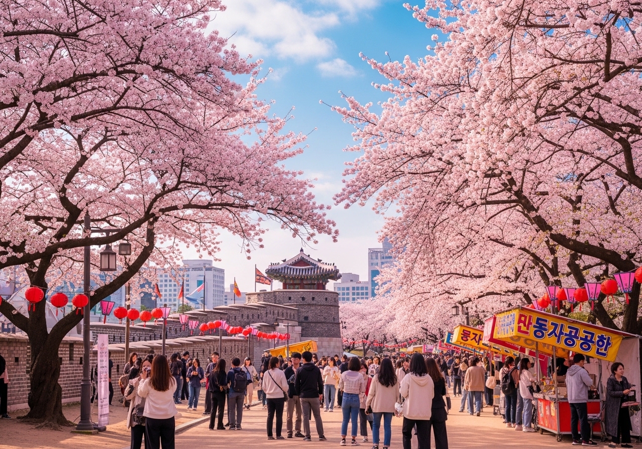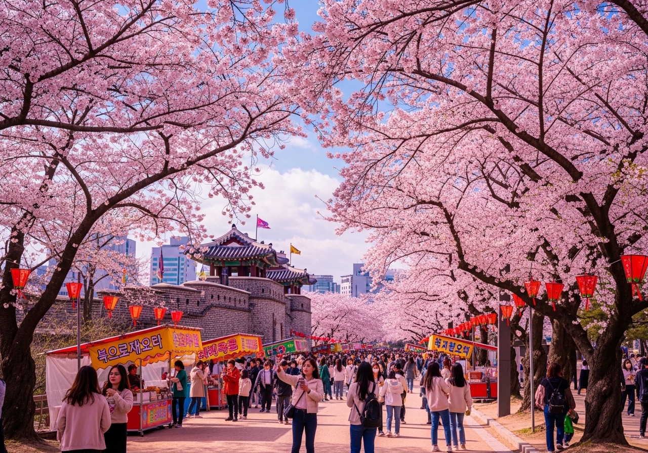 - ✅ 수원 화성 성곽길 벚꽃 산책: 유네스코 세계유산 수원 화성 성곽길을 따라 걸으며 고즈넉한 성벽과 어우러진 벚꽃의 아름다움을 느껴보세요. 특히 서장대 주변 벚꽃이 아름답기로 유명합니다.