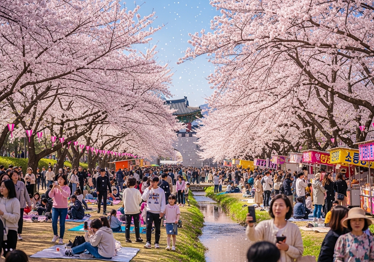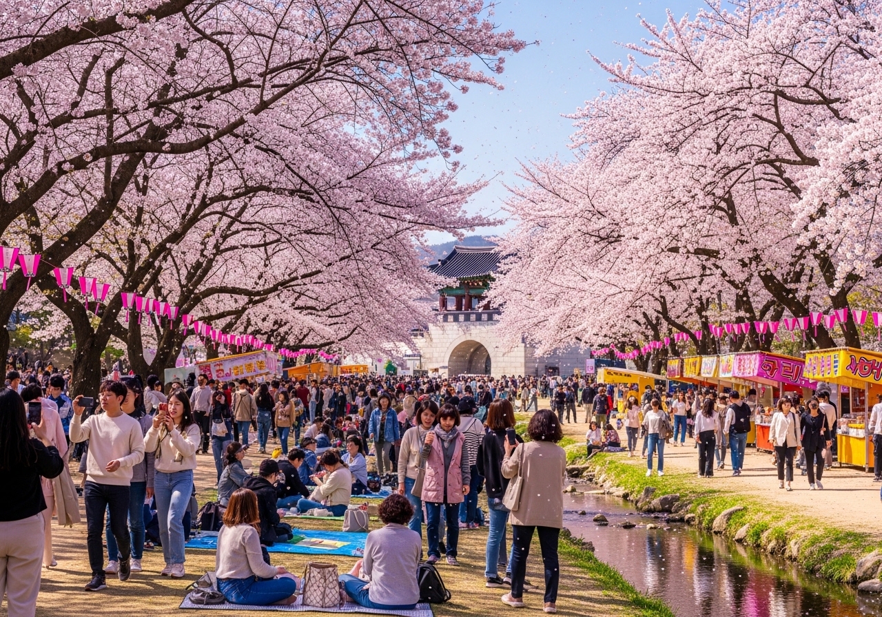 2. 2026년 벚꽃은 4월 5일 개화 시작, 4월 12일 절정으로 평년보다 일찍 만개합니다.