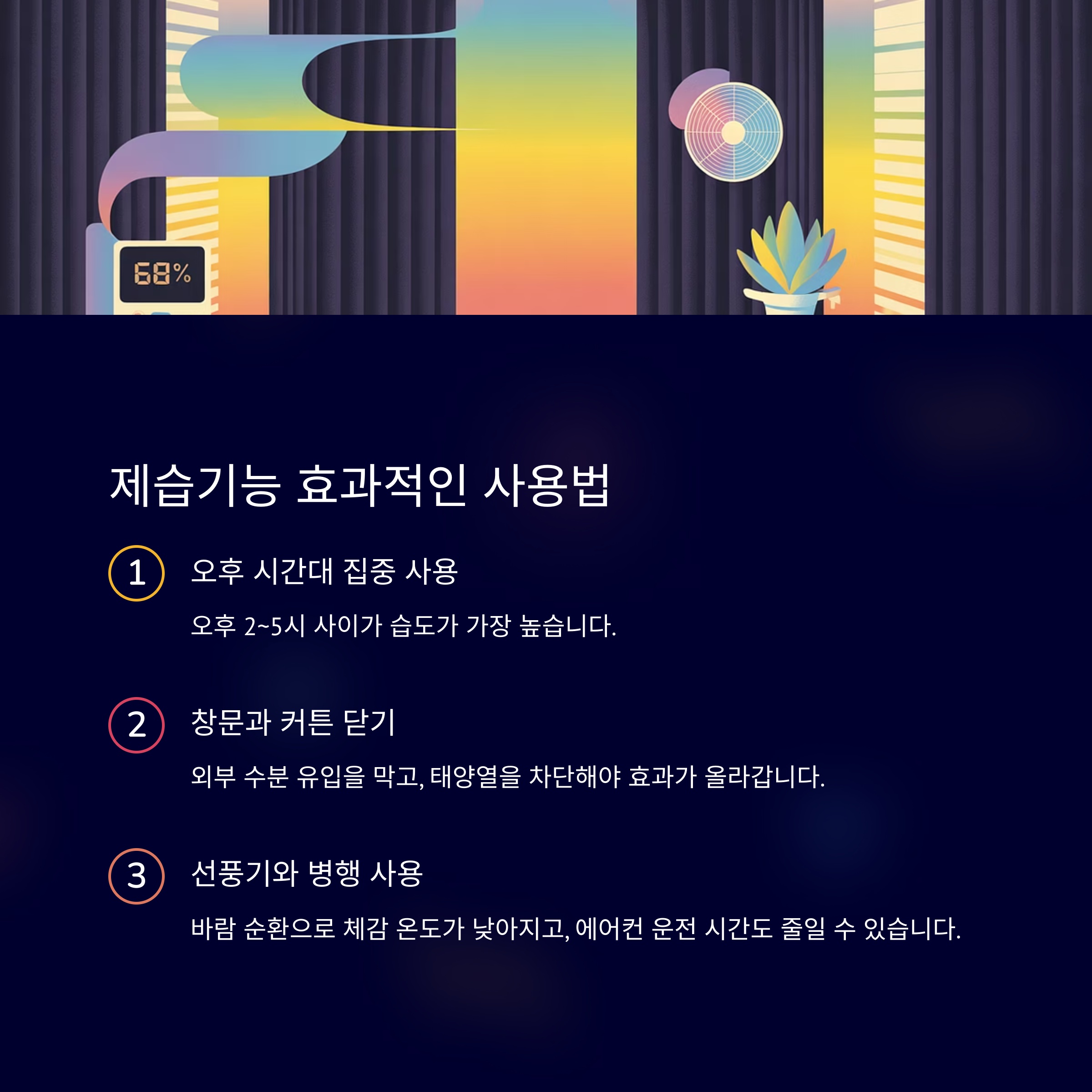 에어컨 운전 시간도 줄일 수 있습니다. - 실내 습도계를 활용해 수치 확인