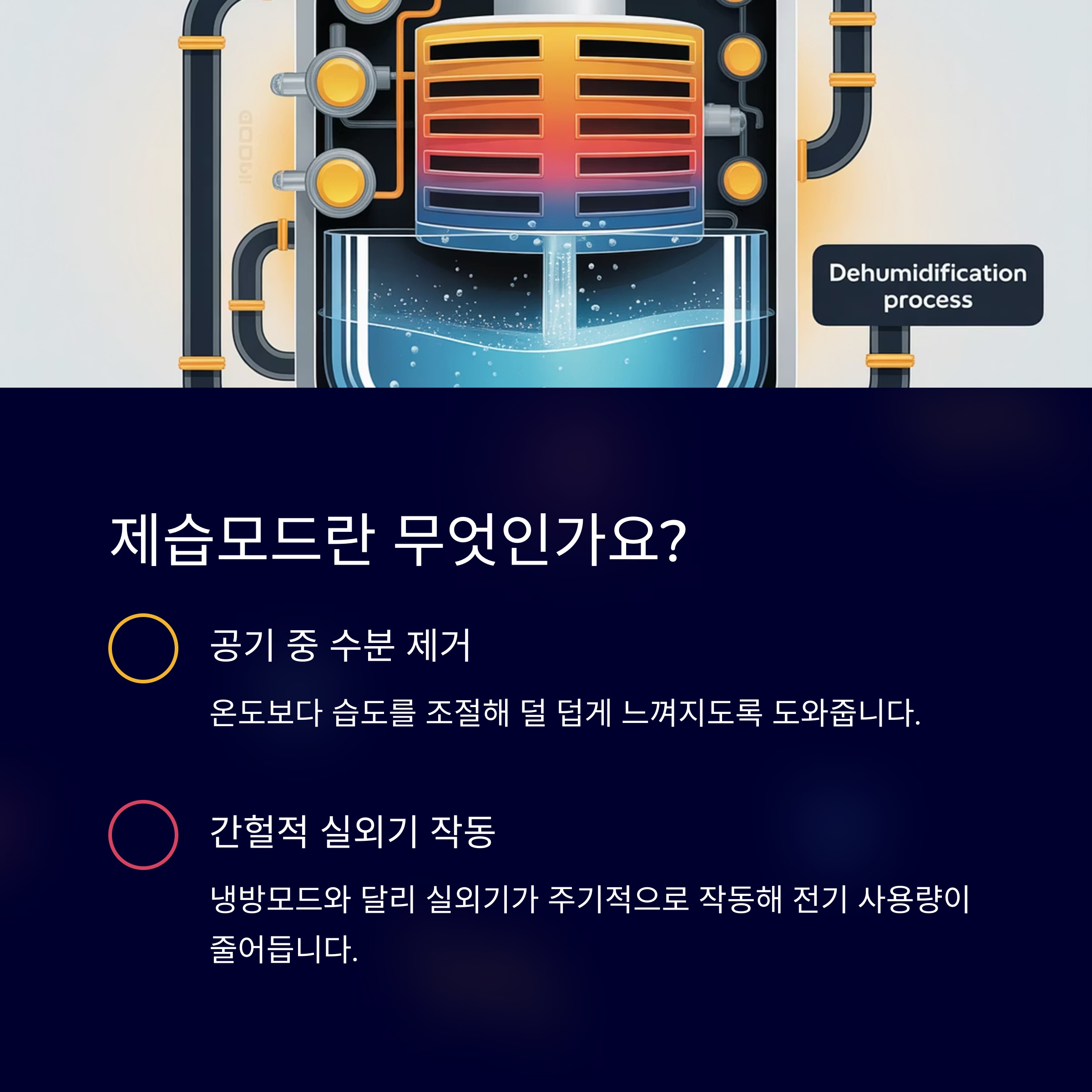 - 제습모드는 실외기 작동 빈도가 낮아 ‘간헐 냉방’ 형태