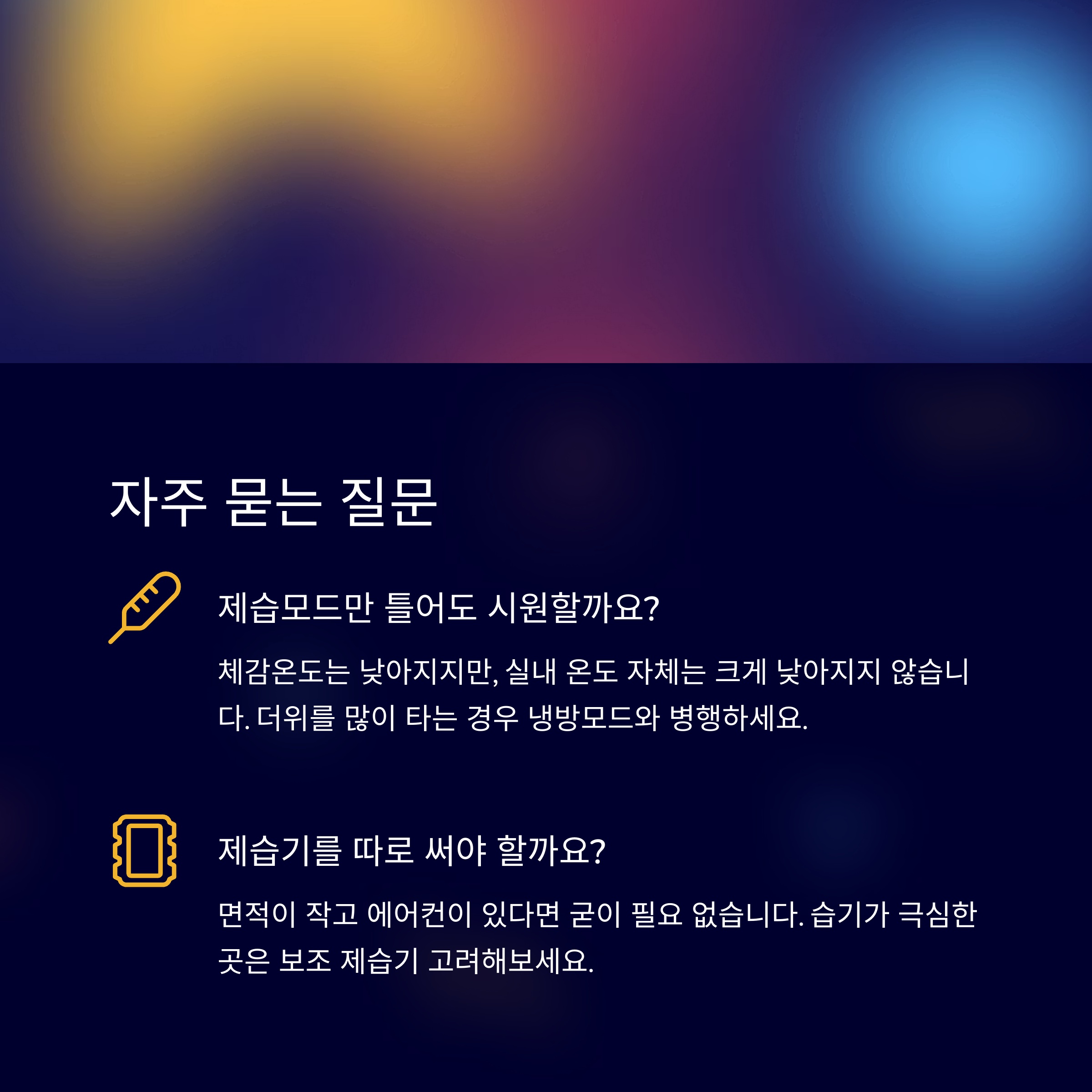 제습모드를 사용할 때는 온도보다 습도 조절이 핵심입니다.