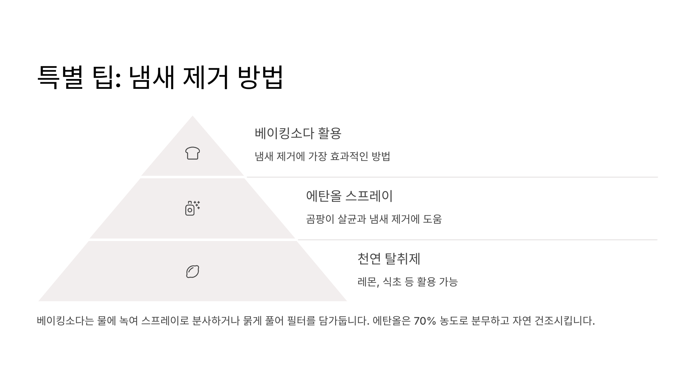 | 냄새 발생 시 | 즉시 청소 | 곰팡이나 세균 번식 의심 |