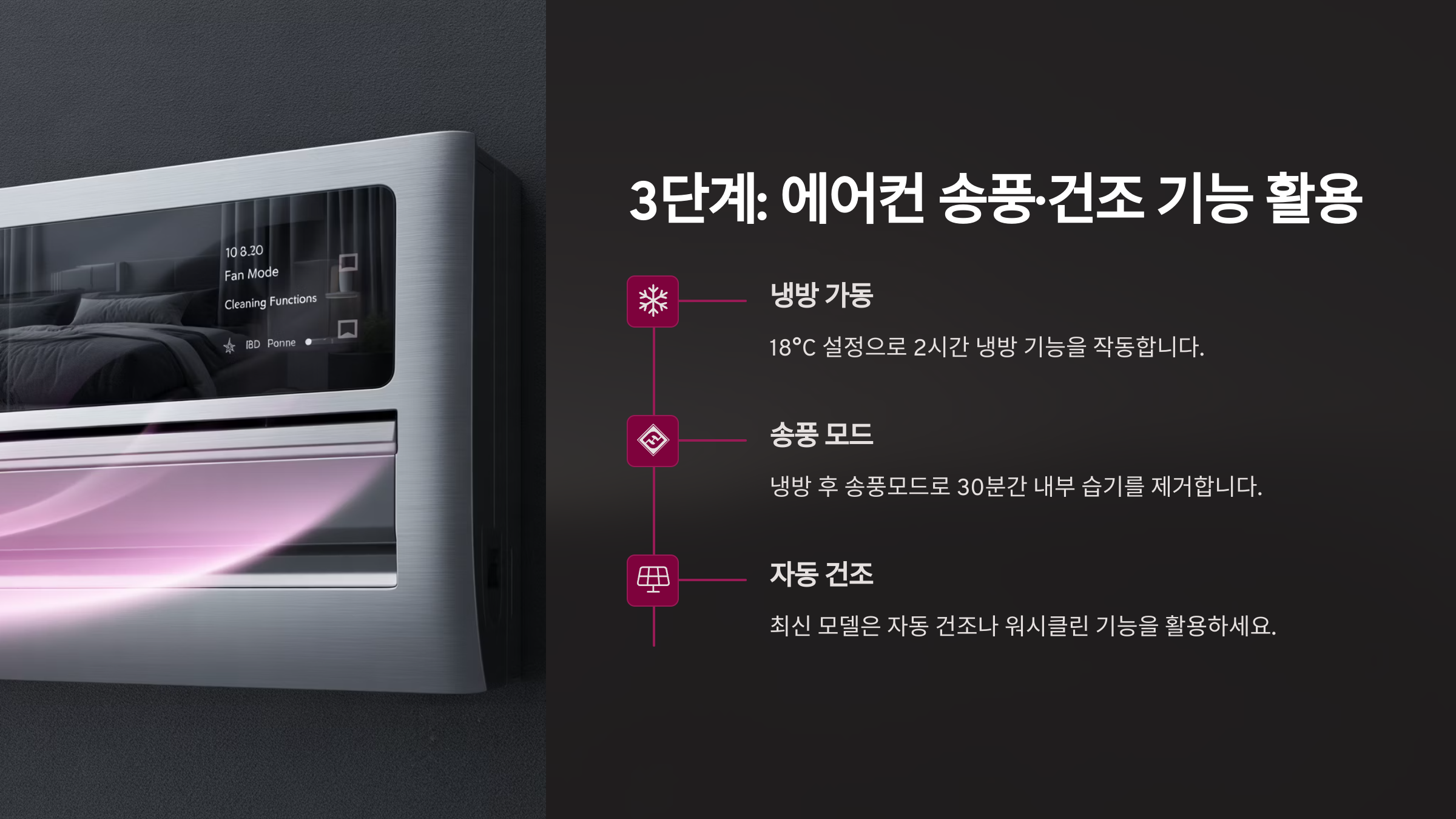- 3단계: 에어컨 내부 습기 제거, 송풍 기능 활용! 💨