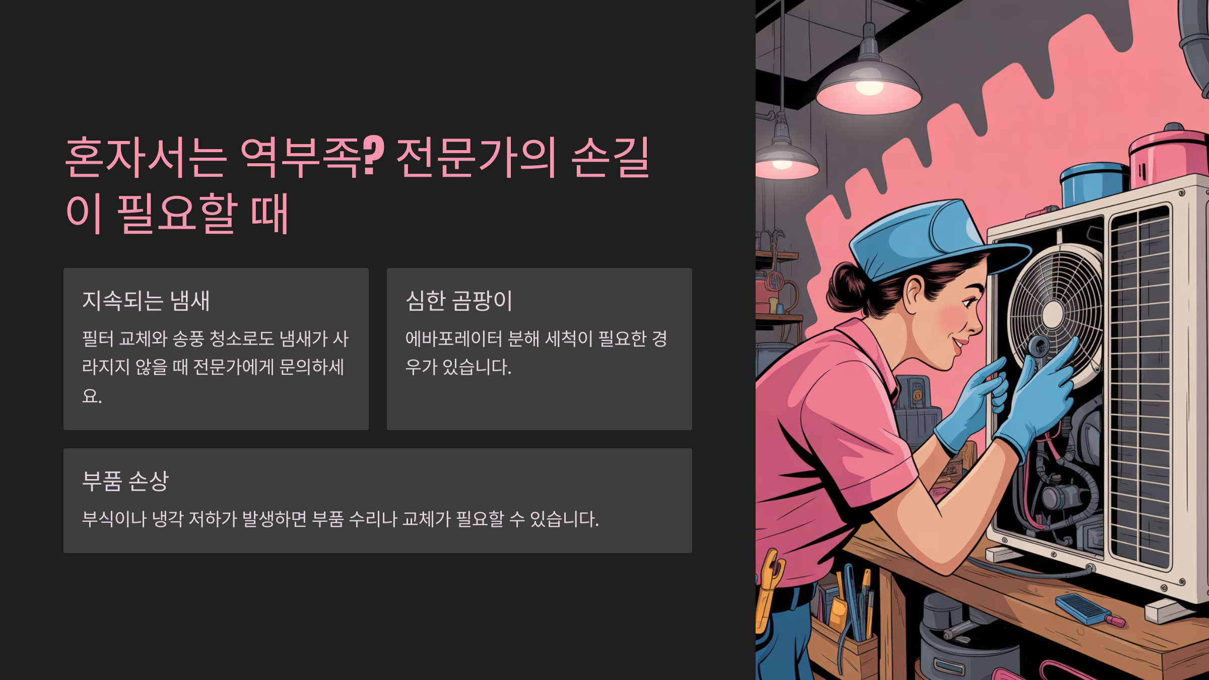 - 전문가 호출 타이밍: 셀프 청소로 해결 안 될 때, 분해가 어려울 때!