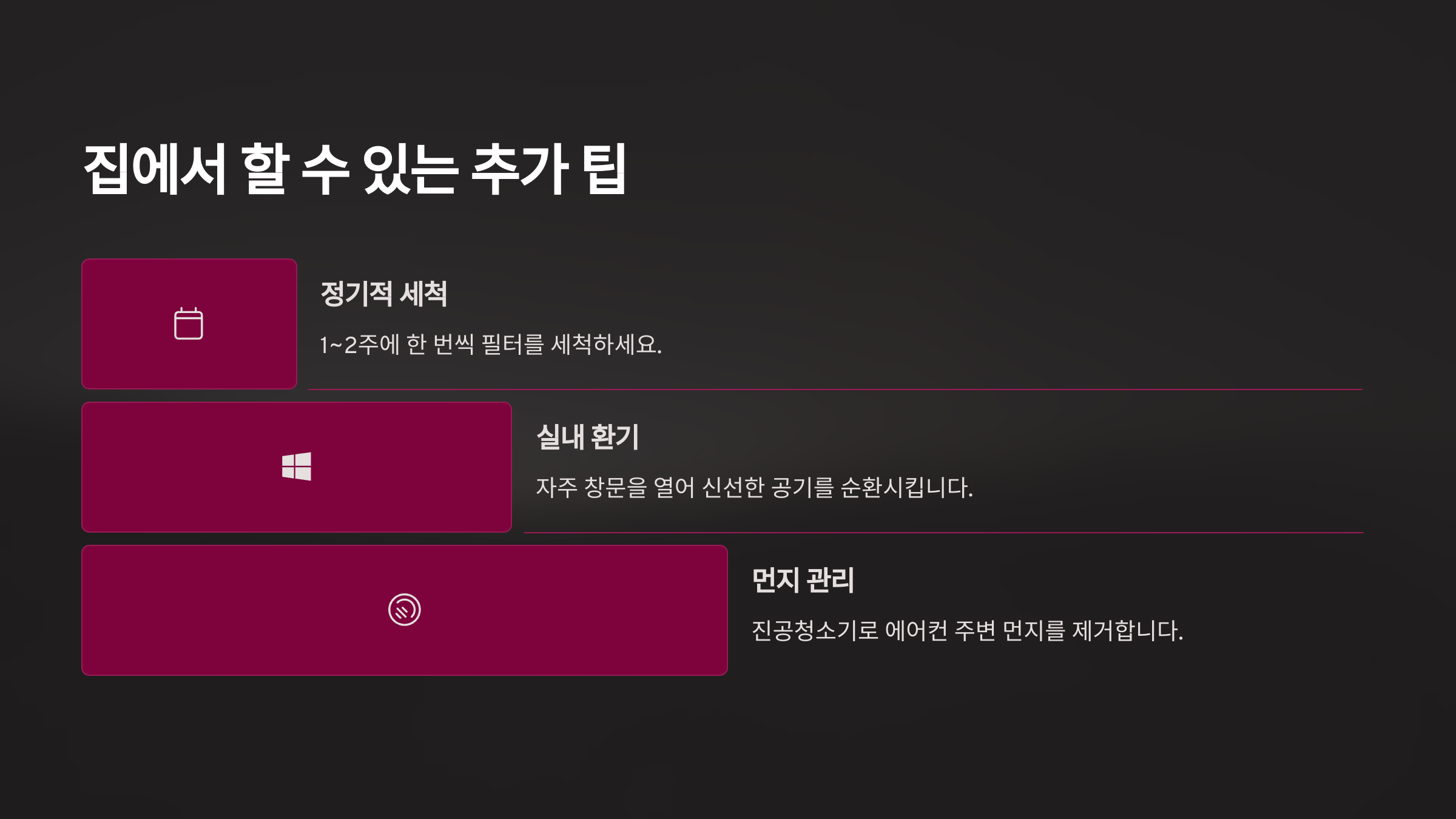 - 정기적인 필터 청소 생활화: 최소 2주에 한 번은 꼭!