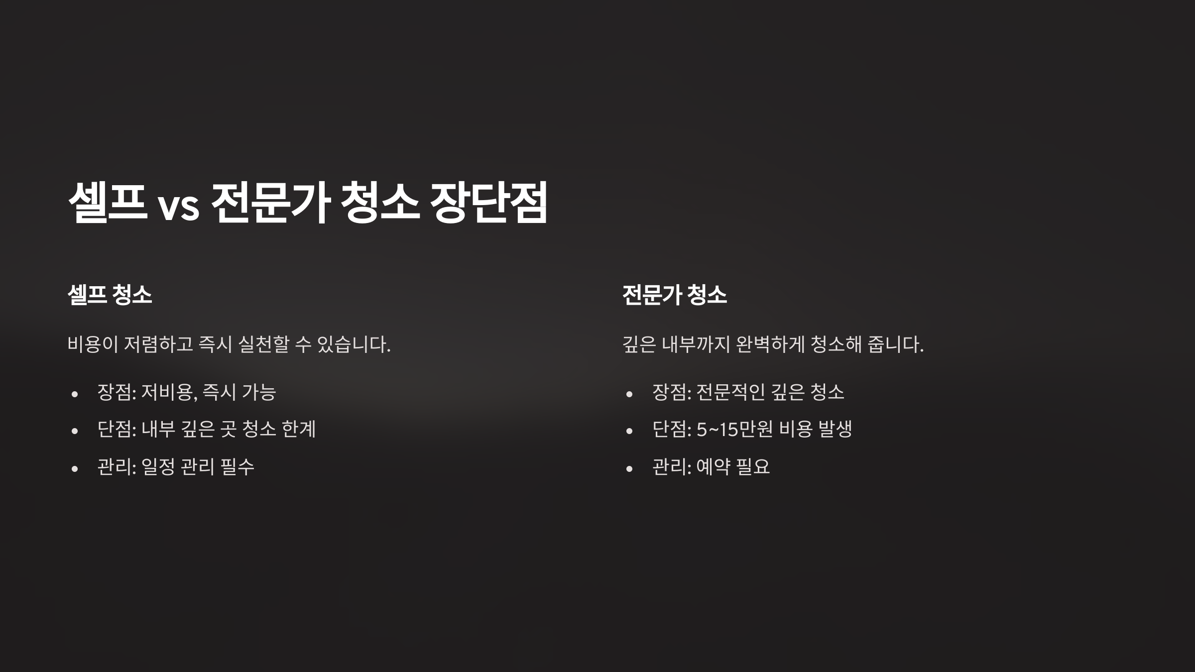 - 전문가 호출 타이밍: 셀프 청소로 해결 안 될 때, 분해가 어려울 때!