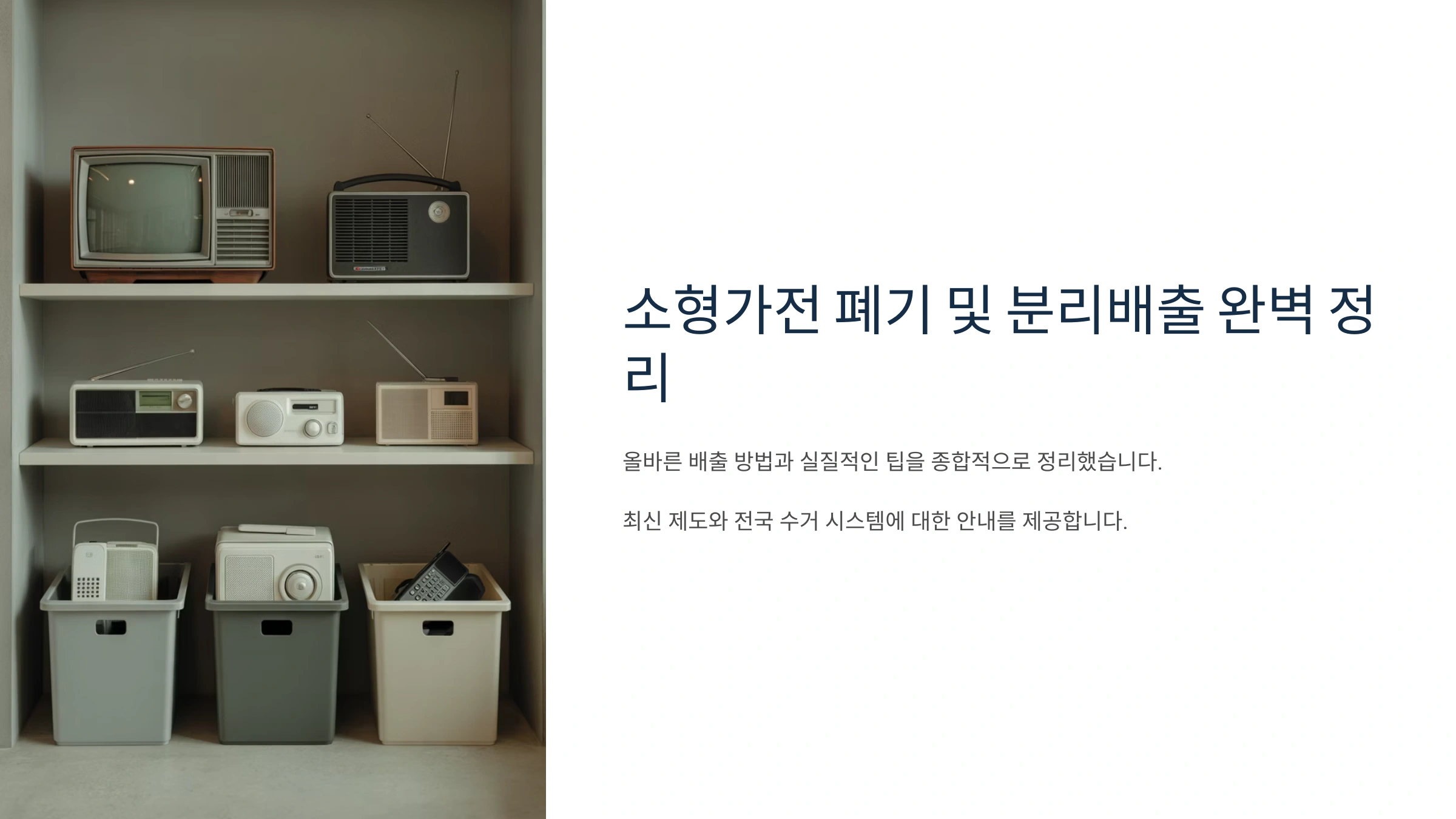 안녕하세요! 얼마 전, 창고 대청소를 하다가 깜짝 놀랐어요. 언제부터 있었는지도 모를 낡은 믹서기, 작동이 될까 말까 한 헤어드라이어, 그리고 이제는 쓰지 않는 구형 전기밥솥까지... 정말 '소형가전 무덤'이 따로 없더라고요. 😥 이걸 그냥 일반쓰레기봉투에 버려야 하나? 아니면 재활용? 스티커를 붙여야 하나? 머릿속이 복잡해지기 시작했죠. 아마 저처럼 소형가전 처리 문제로 고민해 본 경험, 다들 한 번쯤 있으실 거예요. 그래서 오늘은 2025년 최신 기준에 맞춰, 소형가전을 가장 쉽고 똑똑하게 버리는 모든 방법을 총정리해 드리려고 합니다. 저만 믿고 따라오세요! 😊