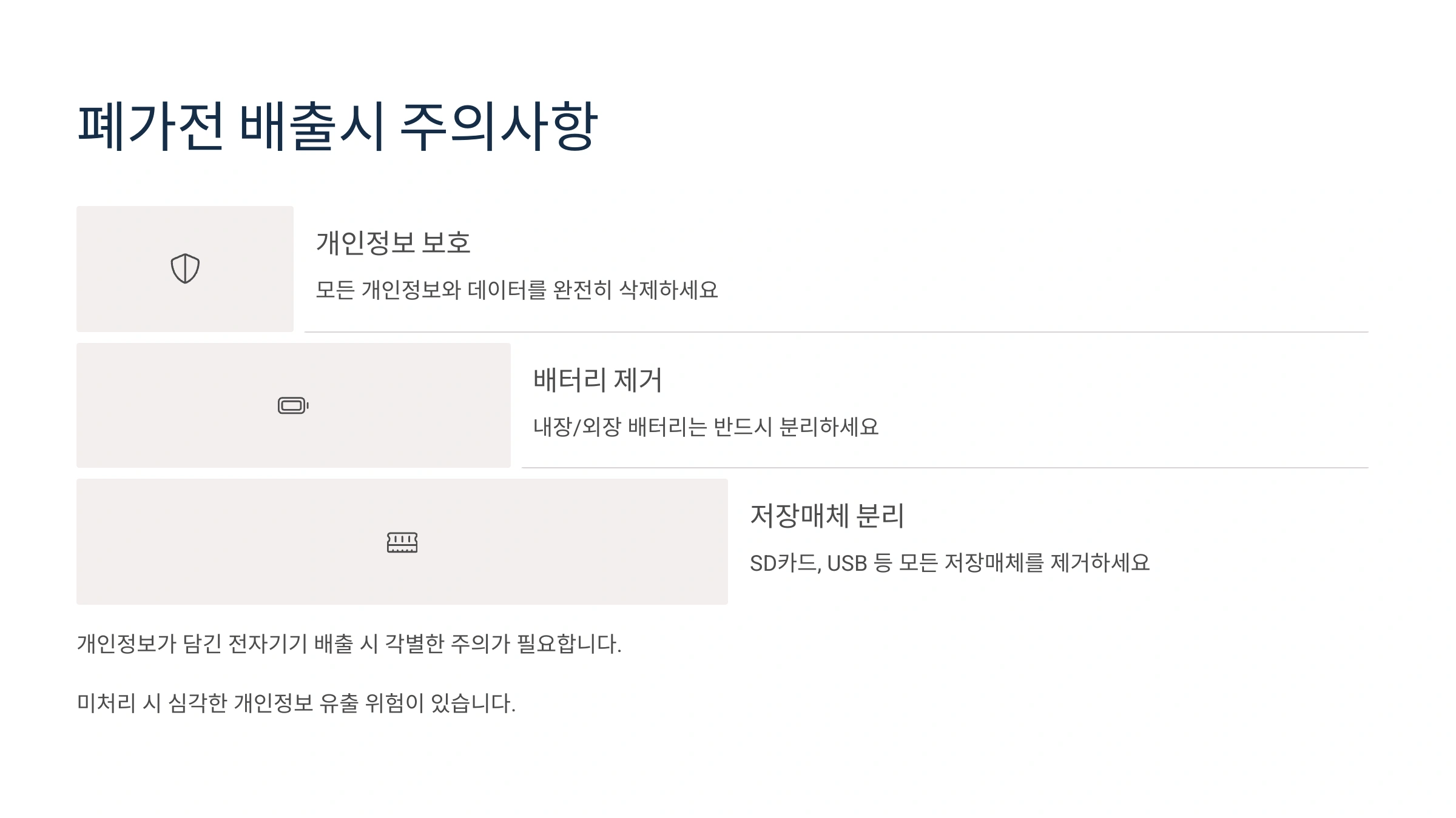 가전제품을 버리기 전에 꼭 해야 할 중요한 과정이 남아있어요. 바로 개인정보 삭제!