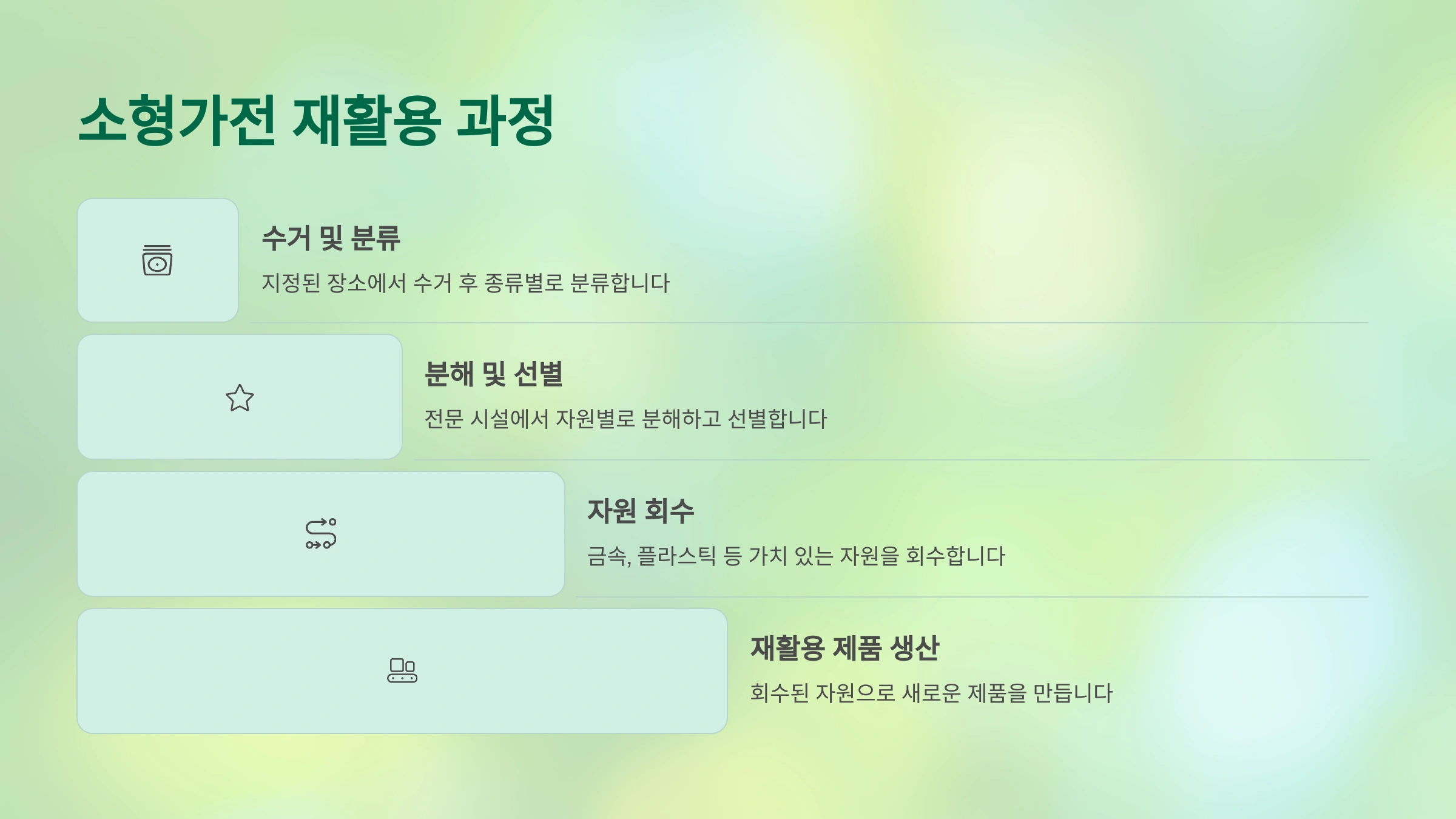 복잡하고 어렵게만 느껴졌던 소형가전 폐기, 이제 완벽하게 정리되셨나요? 조금만 신경 써서 올바르게 분리배출하는 것만으로도 소중한 자원을 아끼고 환경을 보호하는 멋진 실천이 될 수 있답니다. 더 궁금한 점이 있다면 언제든지 댓글 남겨주세요! 😊