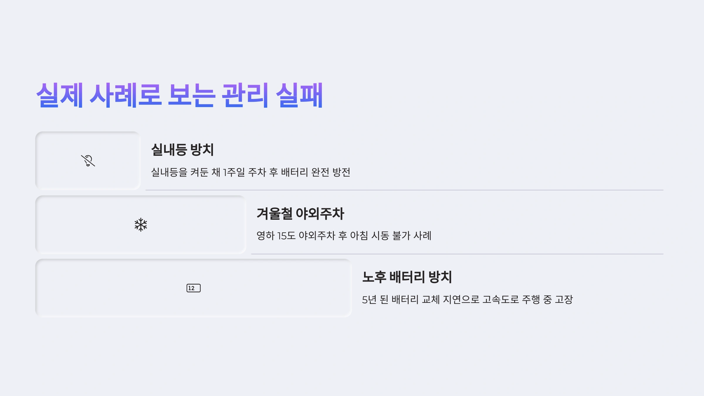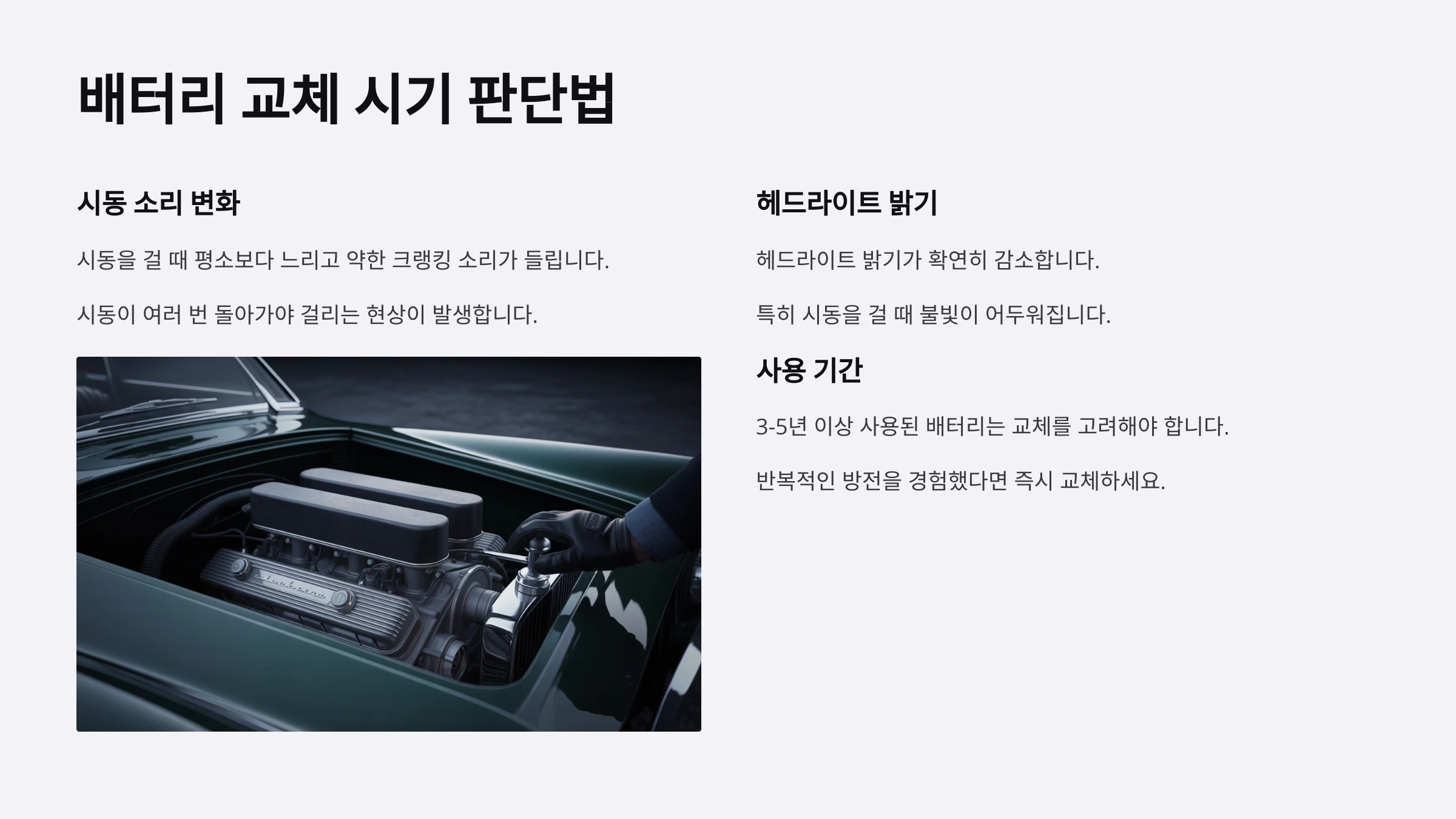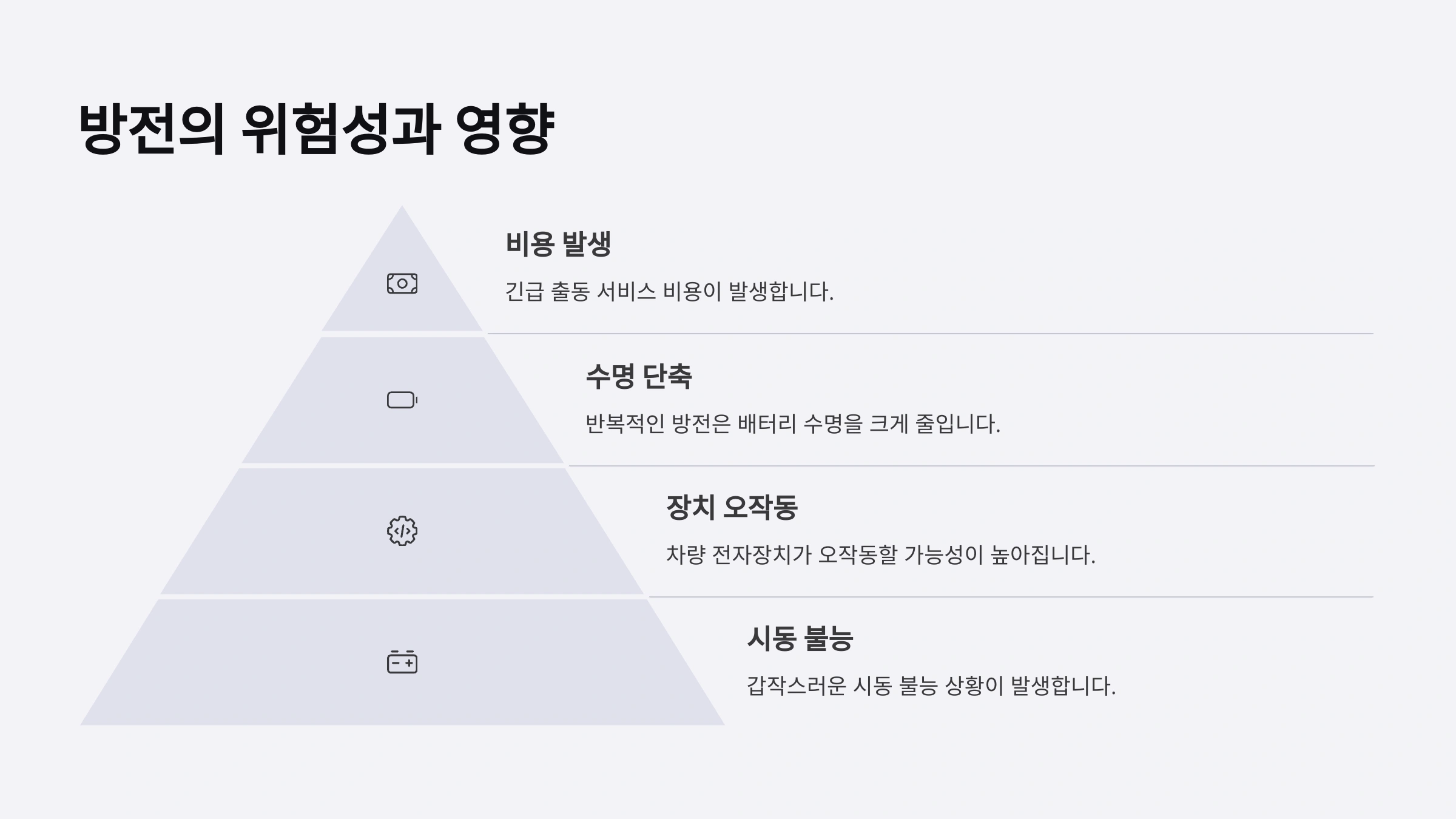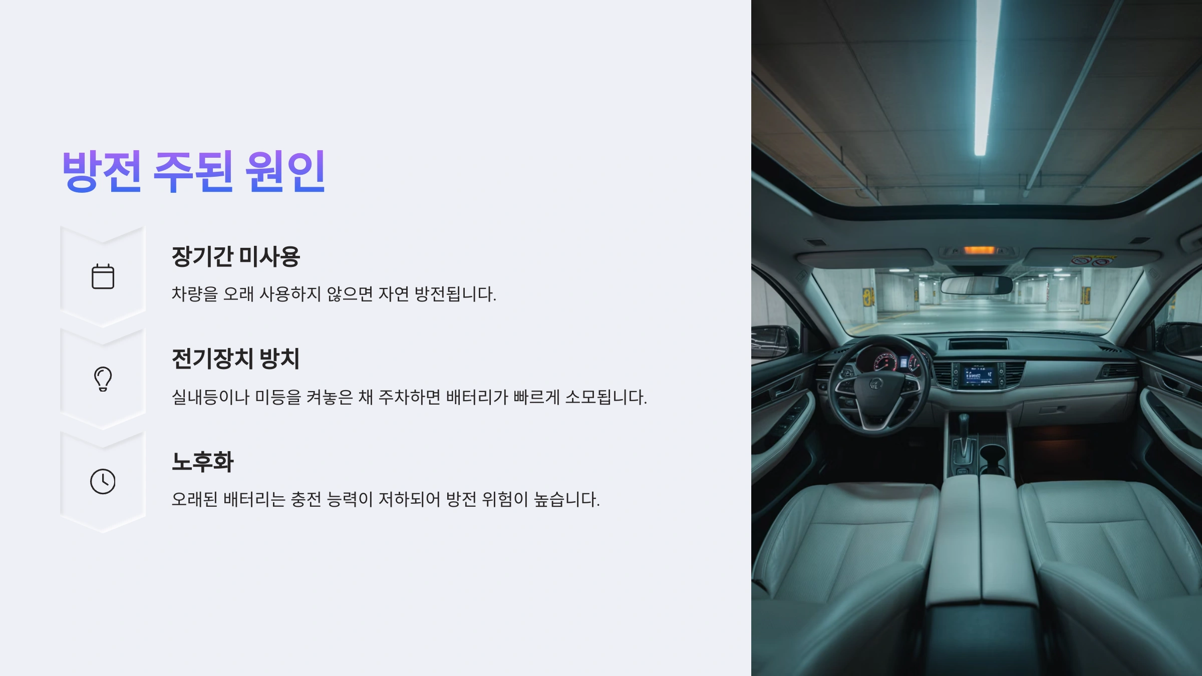 하지만 몇 가지 생활 습관만 바꿔도 배터리 수명을 늘리고, 갑작스러운 방전을 막을 수 있다는 사실! 오늘은 매번 긴급출동을 부르게 만들었던 자동차 배터리 방전의 원인부터 슬기로운 예방 꿀팁까지, 제 경험을 담아 알기 쉽게 싹 다 알려드릴게요! 😊