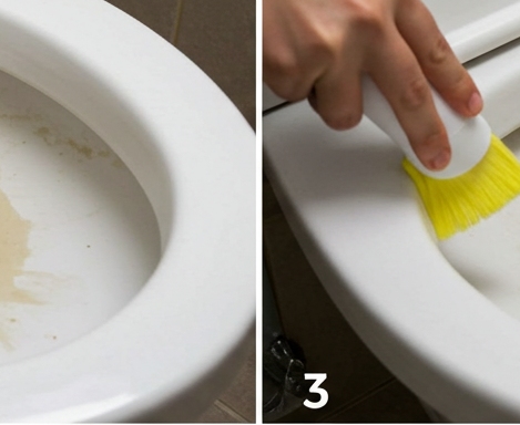 최소 30분에서 1시간, 찌든 때라면 밤새 불려두는 것도 좋아요. 충분히 불린 후 변기 솔로 깨끗하게 문질러줍니다. - 단계 5: 물 내리기