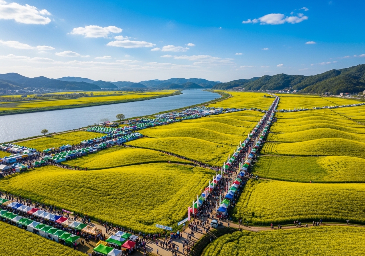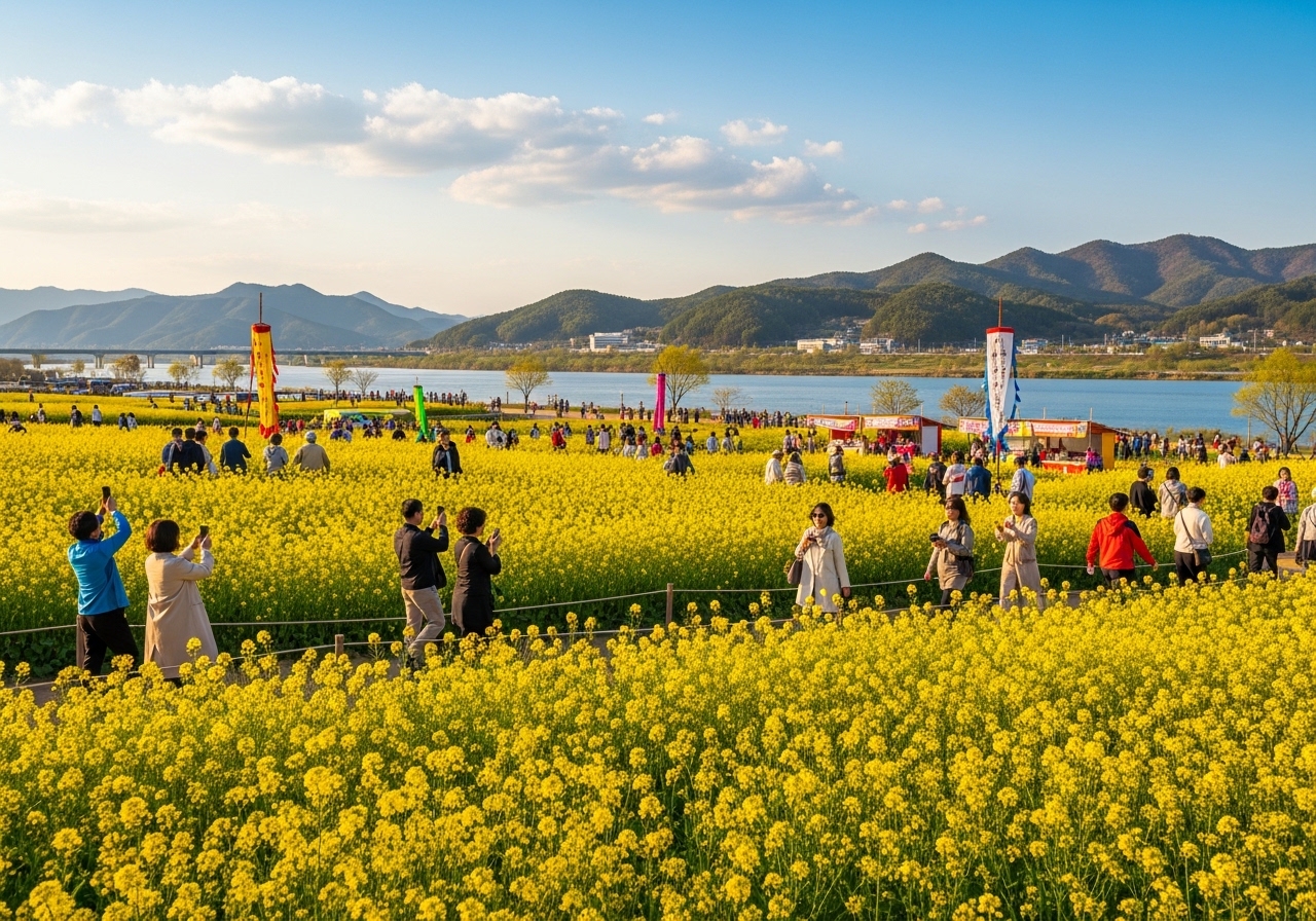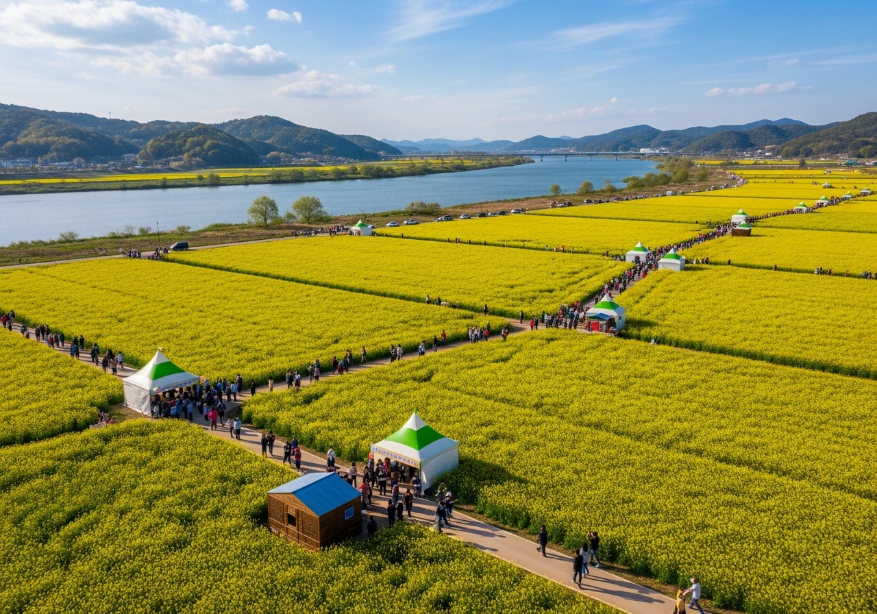 💡 꿀팁: 축제 기간 중 가장 화려하고 풍성한 유채꽃을 보려면 4월 9일(목)에서 4월 12일(일) 사이에 방문하는 것을 추천합니다. 특히 밑동까지 노란빛으로 물든 유채꽃밭은 정말 압도적이에요!
