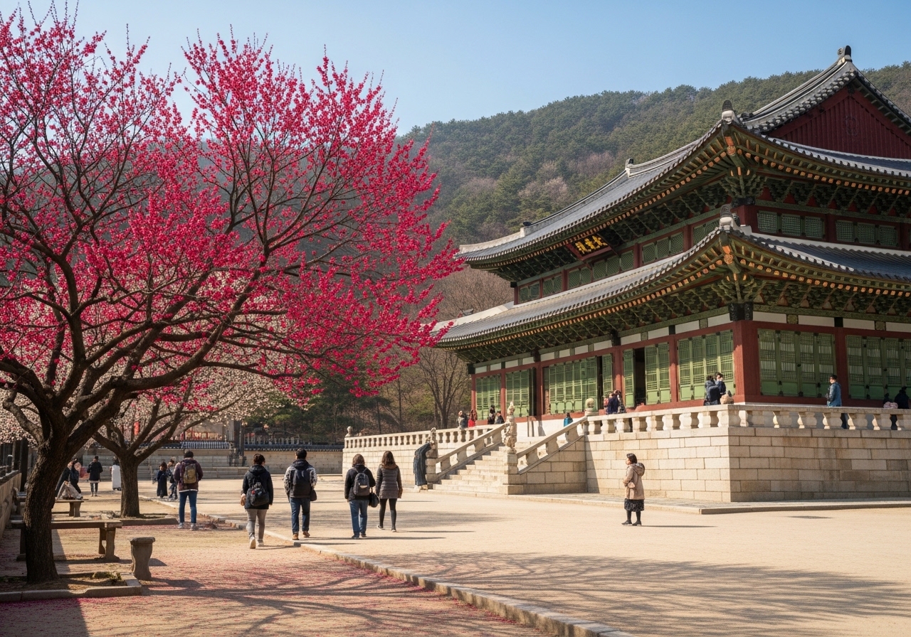 홍매화 외에도 4월 초부터는 청매화와 백매화가 순차적으로 개화하며 또 다른 매력을 선사할 예정이니, 매화 시즌 내내 여러 번 방문하셔도 좋습니다. 고궁 산책과 함께 다양한 매화를 즐기는 것은 정말 특별한 경험이 될 거예요.