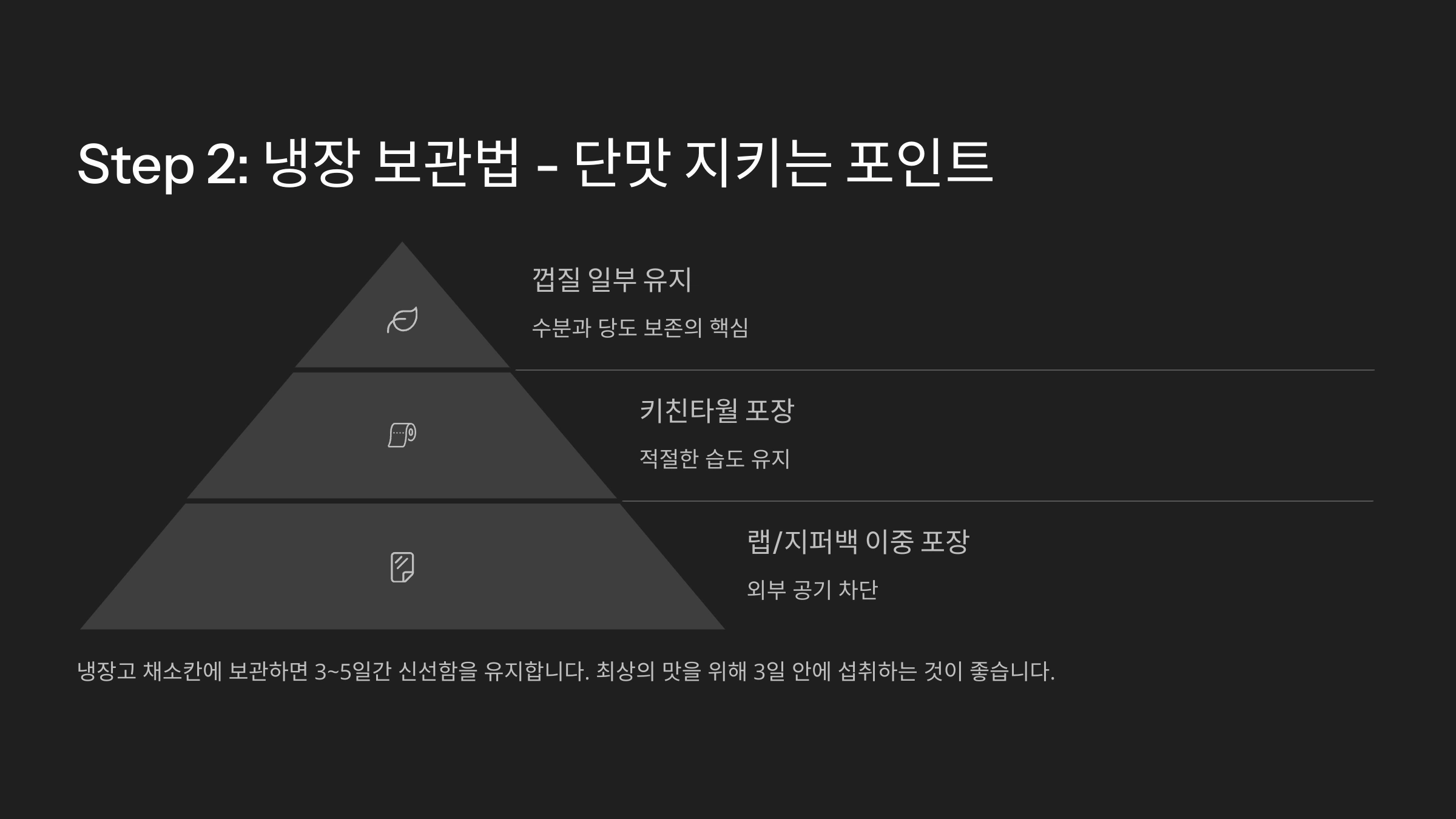 ❄ 냉장 보관 (2~3일): 속껍질 남기고 밀봉 후 세워서 보관