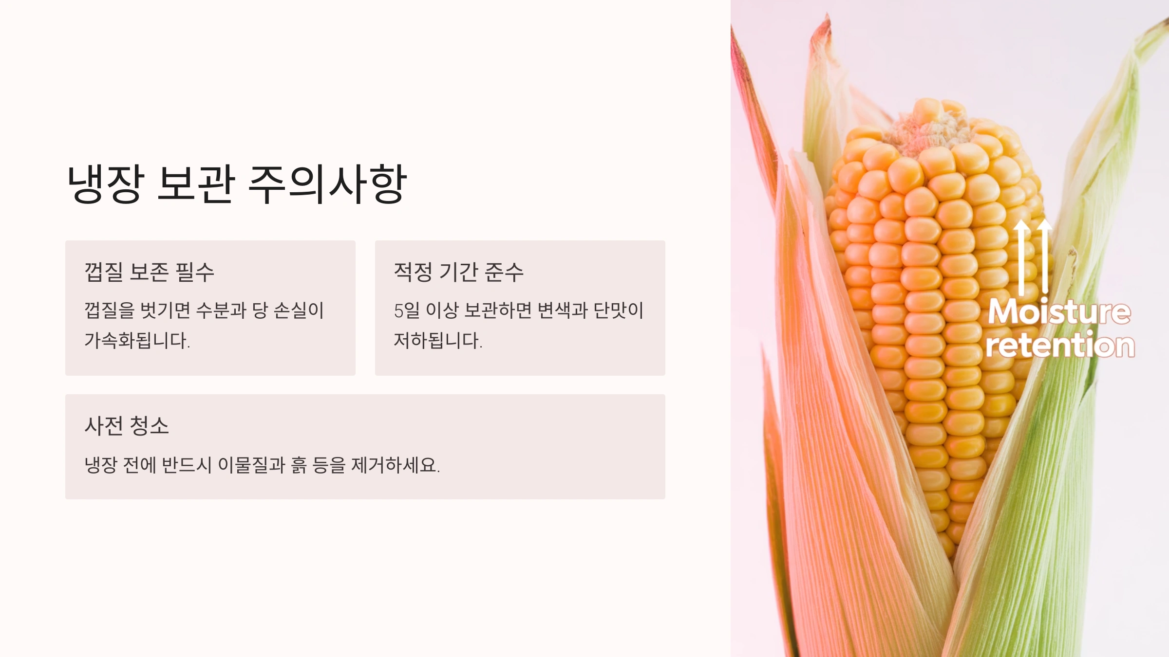 그런데 초당옥수수, 정말 매력적인 녀석이지만 한 가지 치명적인 단점이 있어요. 바로 수확하는 순간부터 단맛이 빠르게 사라진다는 사실! 그래서 처음 샀을 때 그 감동적인 맛을 유지하려면 '보관'이 정말 정말 중요하답니다. 잘못 보관하면 비싼 돈 주고 산 옥수수가 밍밍한 그냥 옥수수가 되어버리는 마법(?)을 경험하게 될지도 몰라요. 오늘은 초당옥수수의 단맛을 사수하는 특급 보관법과 그 맛을 극대화하는 꿀팁들을 대방출할게요!